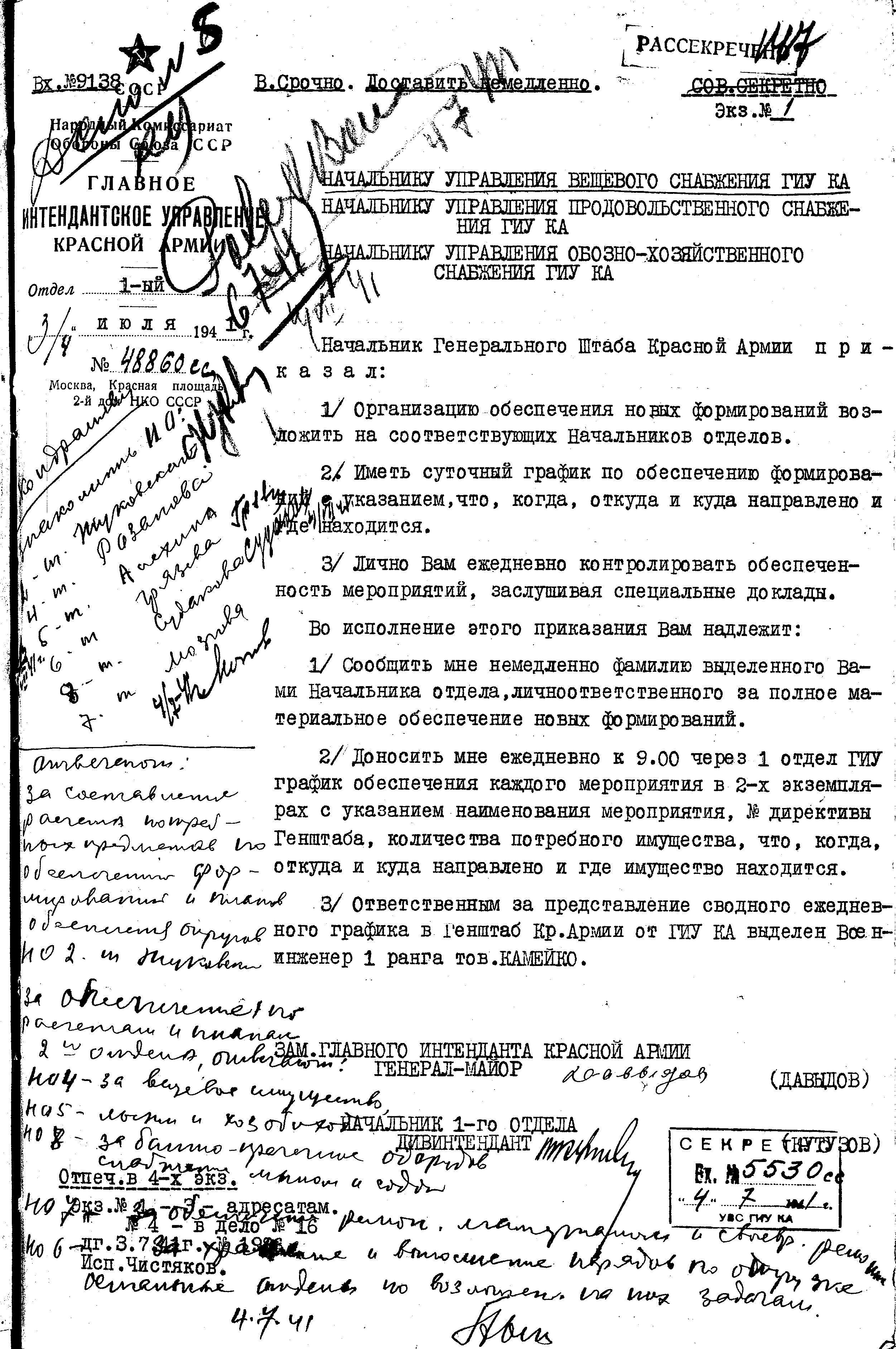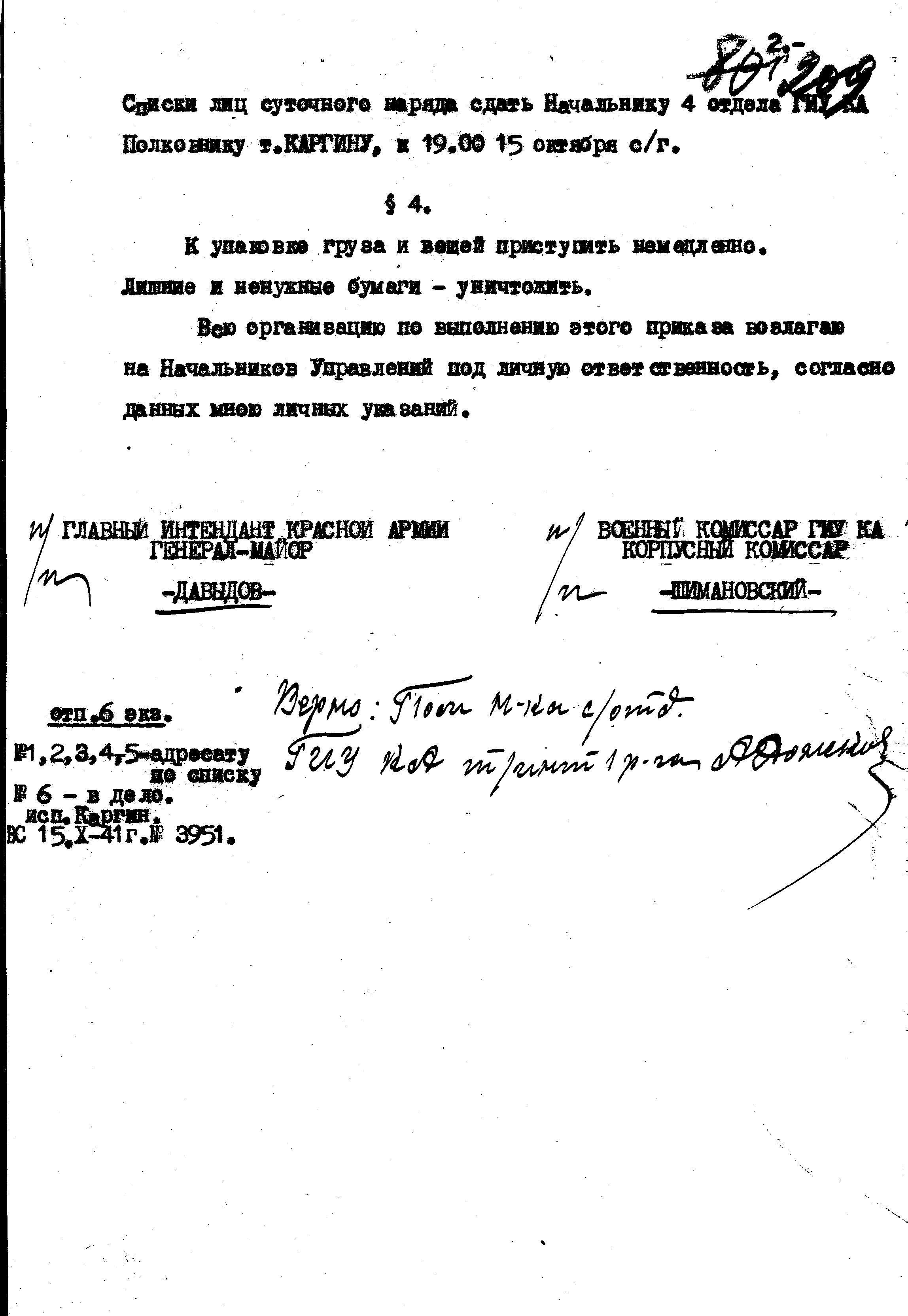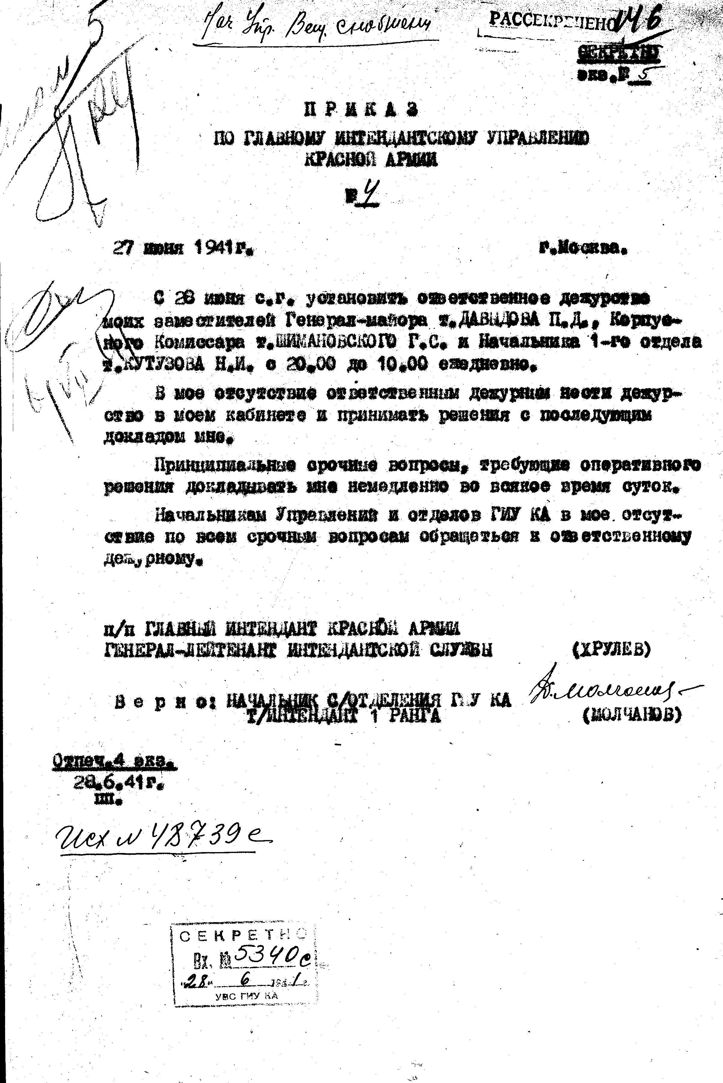 Предлагаю вашему вниманию приказ начальника Главного Интендантского управления Красной Армии, от 14 октября 1941 года[1].
