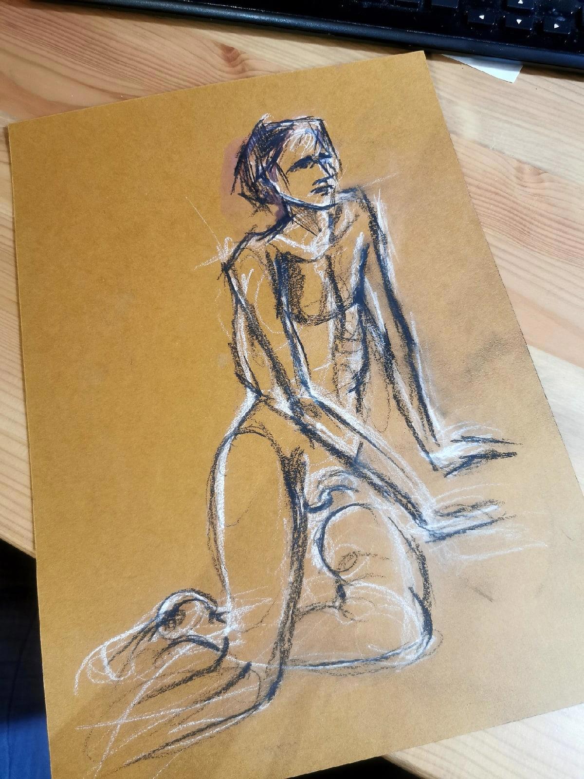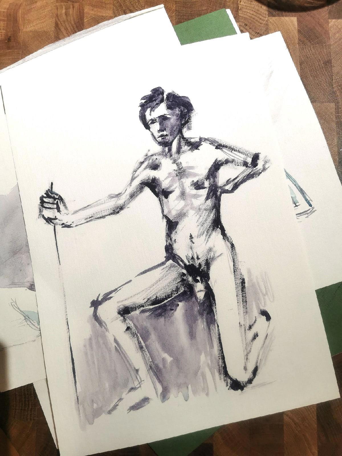 Профессиональный натурщик с 25-летним стажем и удивительной анатомией. Мало того, что он очень высокий и настолько худой, что можно посчитать все ребра , так еще и похож на Гоголя:) Хотим еще и на портрет его пригласить.
