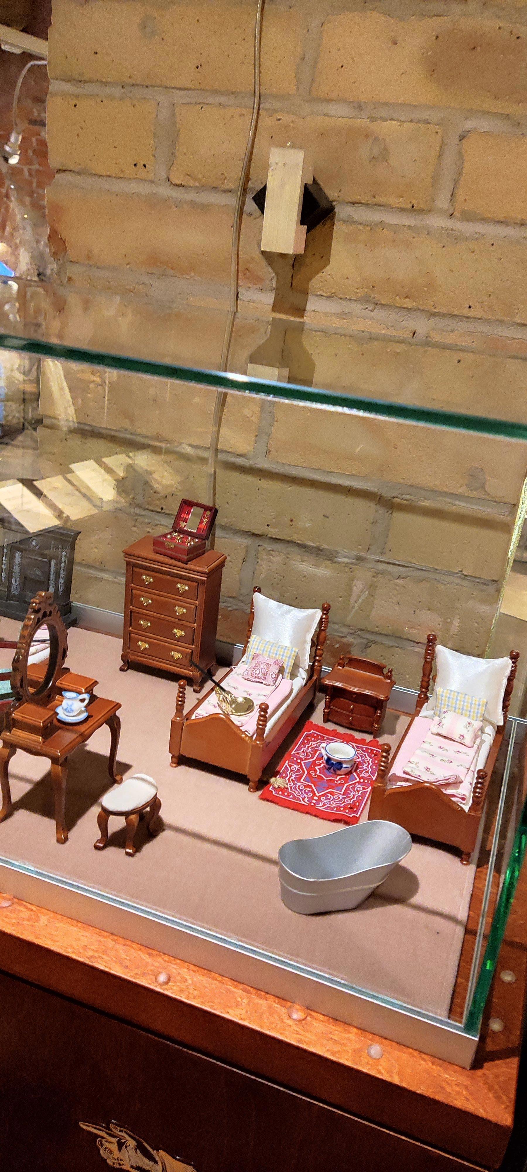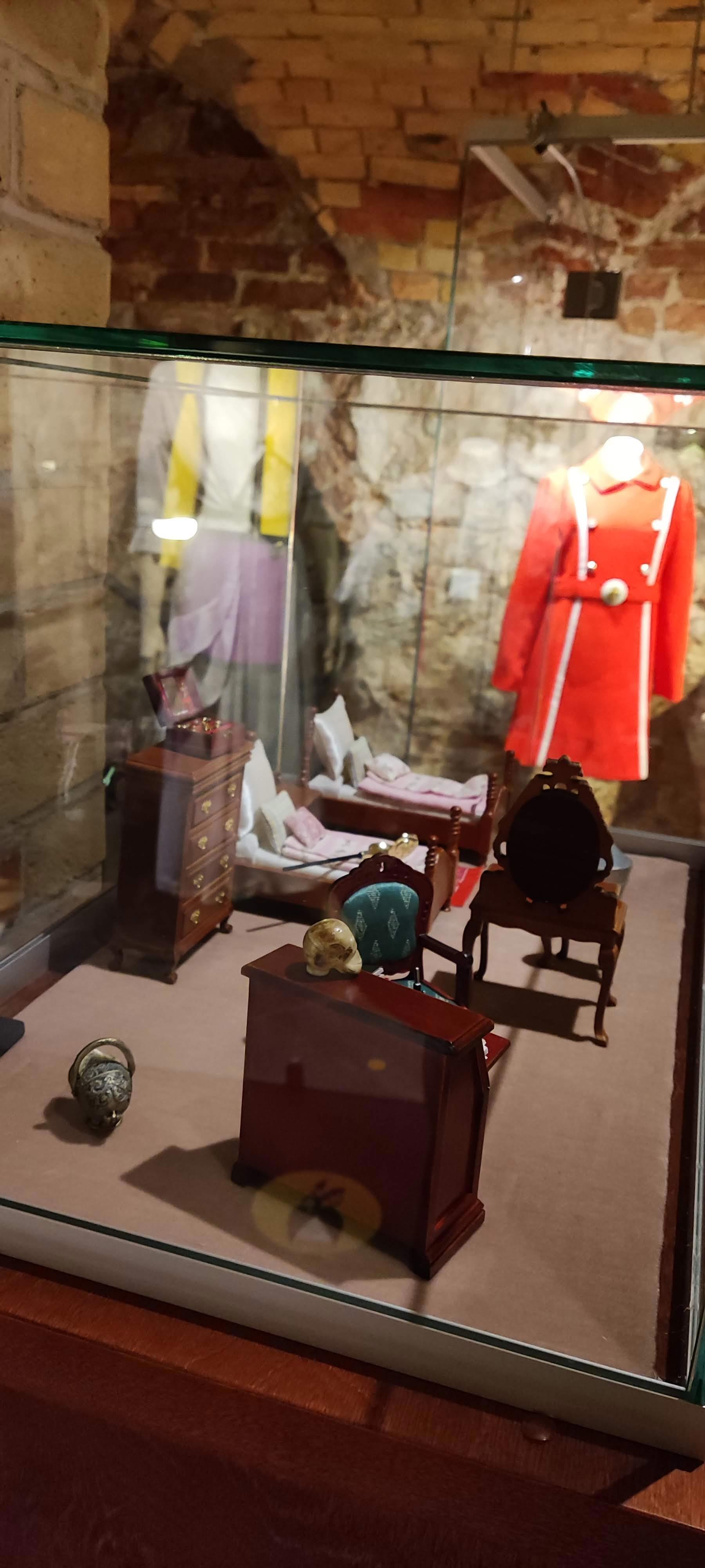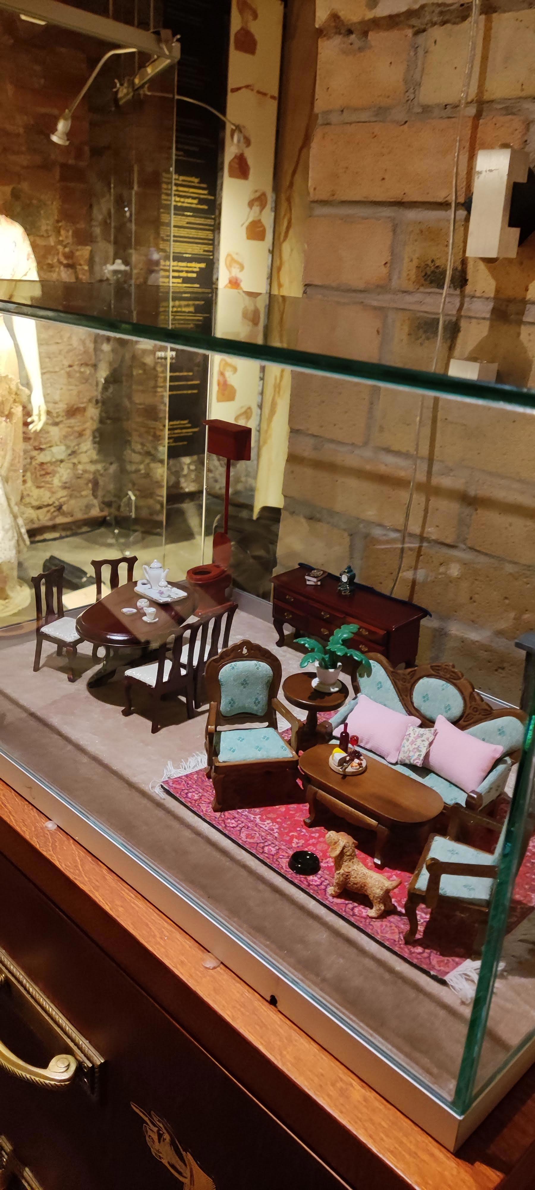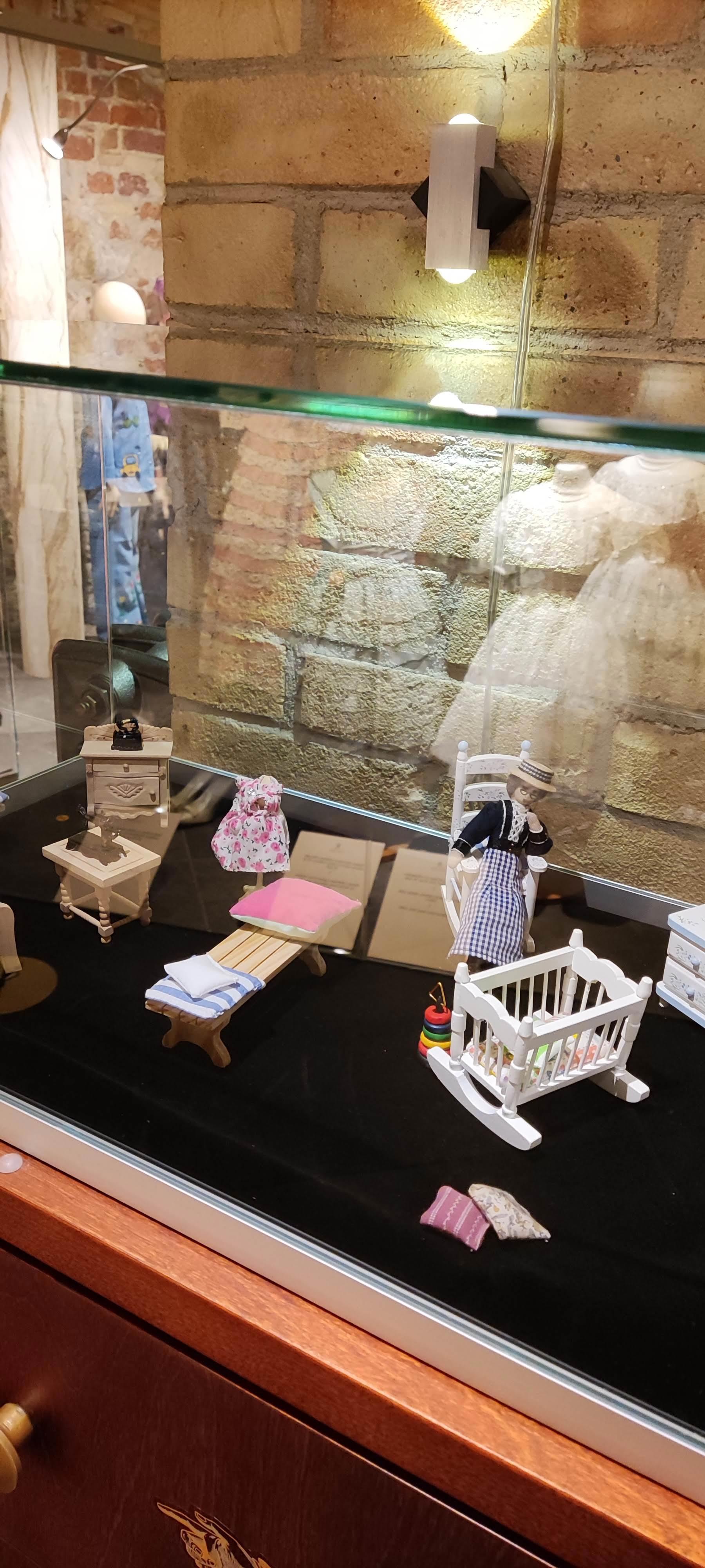А здесь стенды с интерьерами разных времен. Похоже, все эти предметы - детские игрушки для создания "домика".