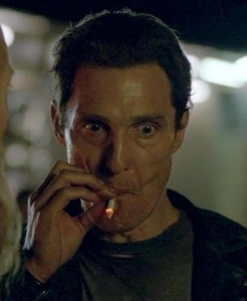 Диапазон эмоций МакКонахи в случайно взятой сцене с сигаретой :
