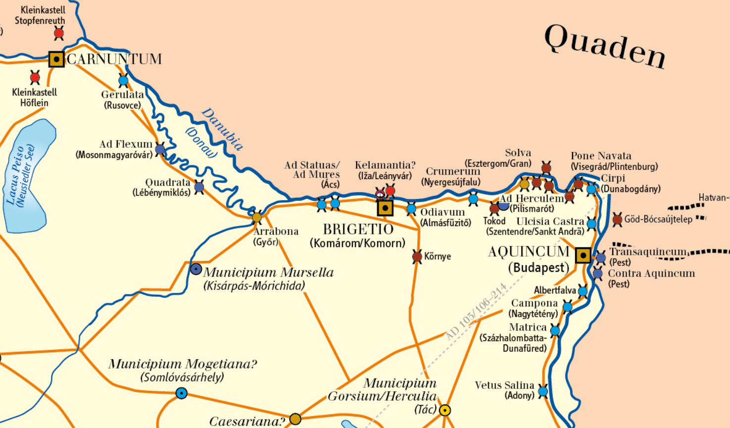 В 12 году до н. э. римляне покорили эрависков. Для охраны границ империи по Дунаю в I — II веках н. э. были построены военные лагеря Aquincum, Contra-Aquincum и Transaquincum. Первый из них быстро сделался городом, ставшим в 103 году столицей провинции Нижняя Паннония.