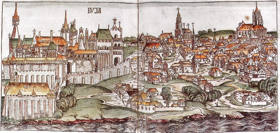 Буда. Миниатюра из Нюрнбергской хроники 1493 года.