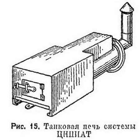В этой же инструкции упоминались также те самые печки-буржуйки, которые сейчас относят к «солдатской смекалке». Вот картинка такой печки из этого справочника и называется она «танковая печь системы ЦНИИАТ»: