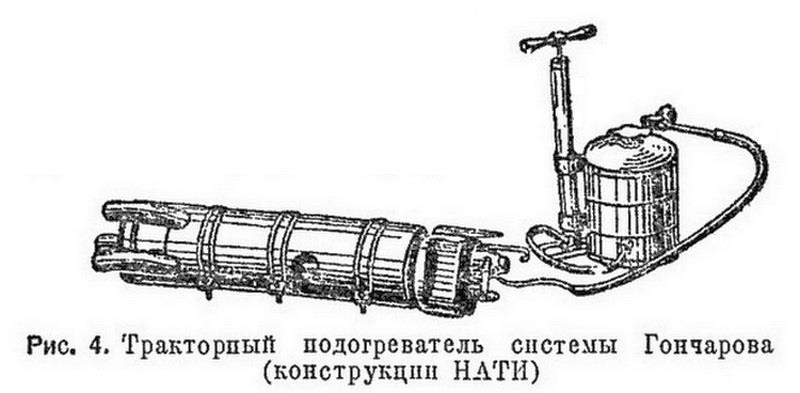 Следующее по размерам устройство, это, наверное, тракторный подогреватель Гончарова, созданный на основе конструкции «НАТИ»: