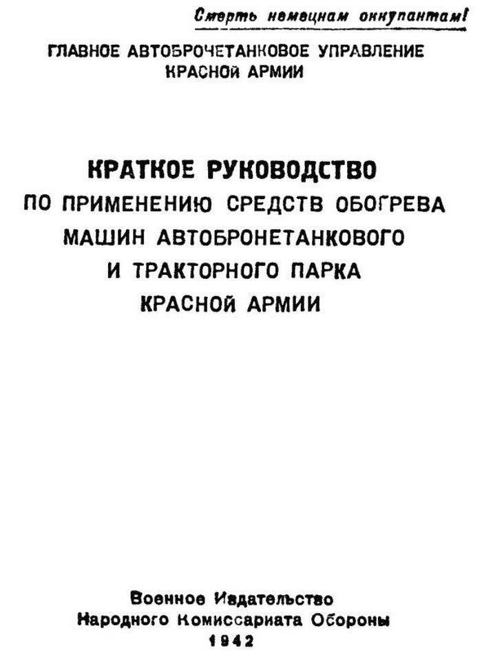 И тут неизбежно возникает в памяти ещё один тепловой нюанс. Приходилось на морозе градусов в 15-20 заводить холодный двигатель с подсевшим аккумулятором? У меня с «Запорожцем» было такое… скажу так: непросто. С танковым двигателем ещё труднее. И немцы потеряли немало техники именно из-за этой «мелочи». А что у нас? Поискал. Сразу всплыл вот такой документ: