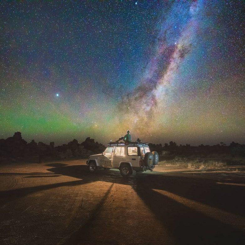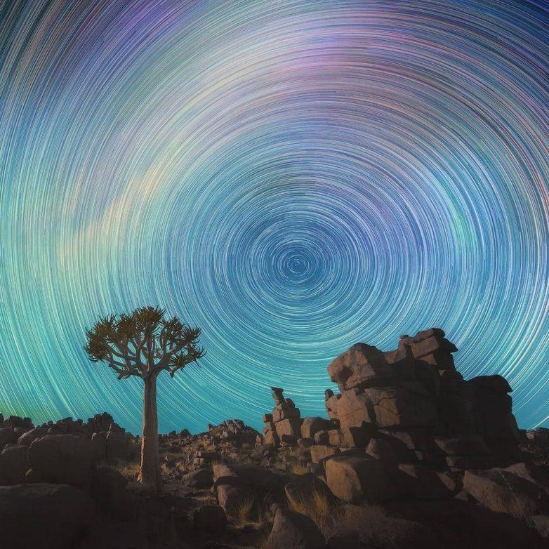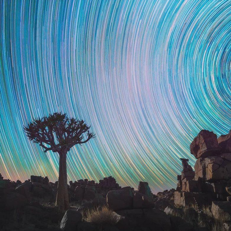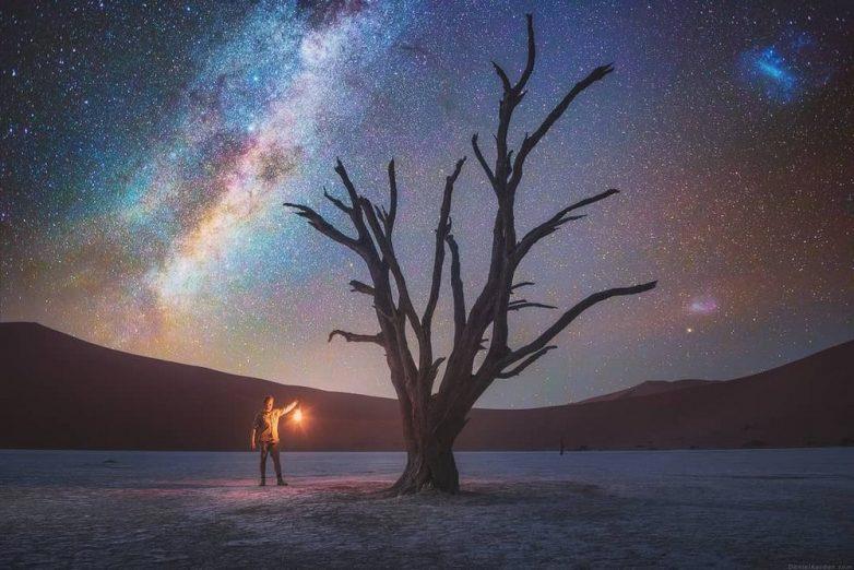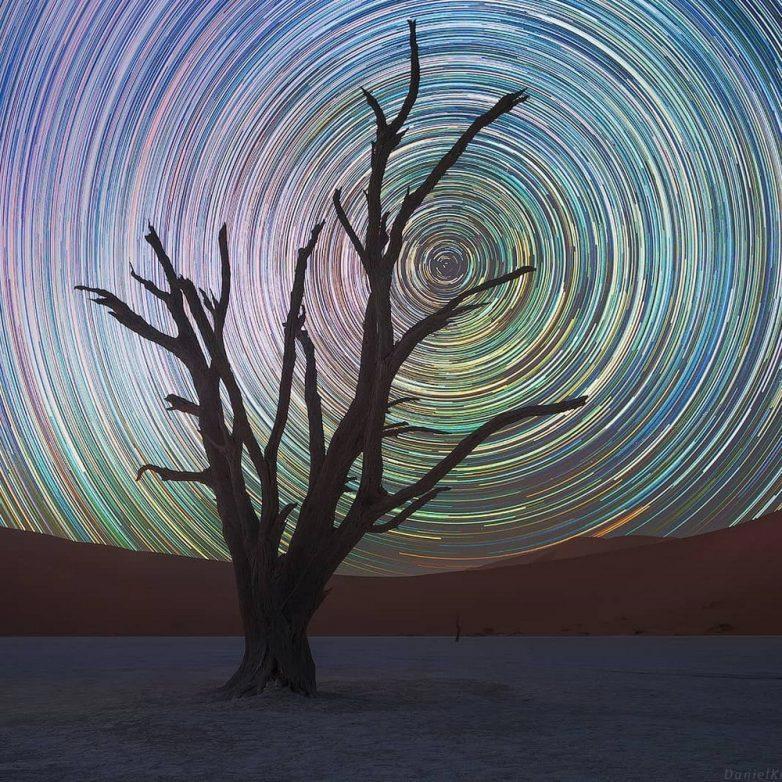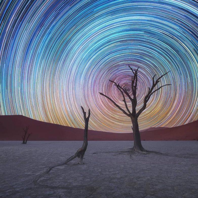Засохшие стволы деревьев, которые умерли около 700 лет назад, раскалённые пески и каменистые равнины – всё это осветил яркий свет звёзд, которые гипнотическими спиралями закрутились на ночном небе.