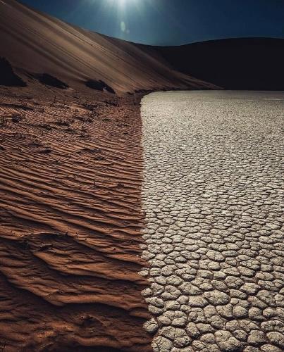 Несмотря на кажущуюся серость Намиб, яркий небосвод словно вселяет жизнь в это место, заставляя его играть новыми красками.