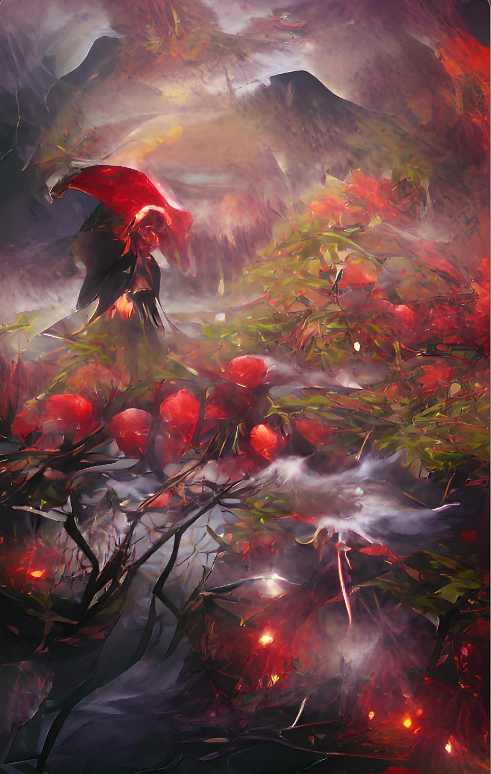 А вот так «Рябиновую ночь» по моим подсказкам увидела и нарисовала нейросеть.