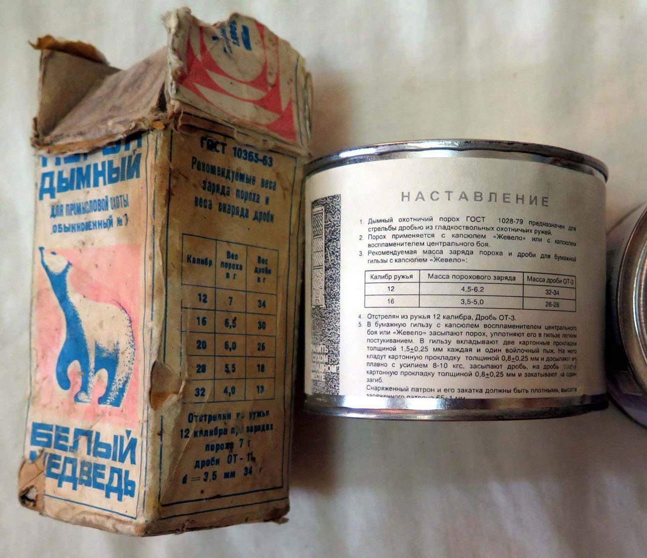 Упаковки с дымным порохом.