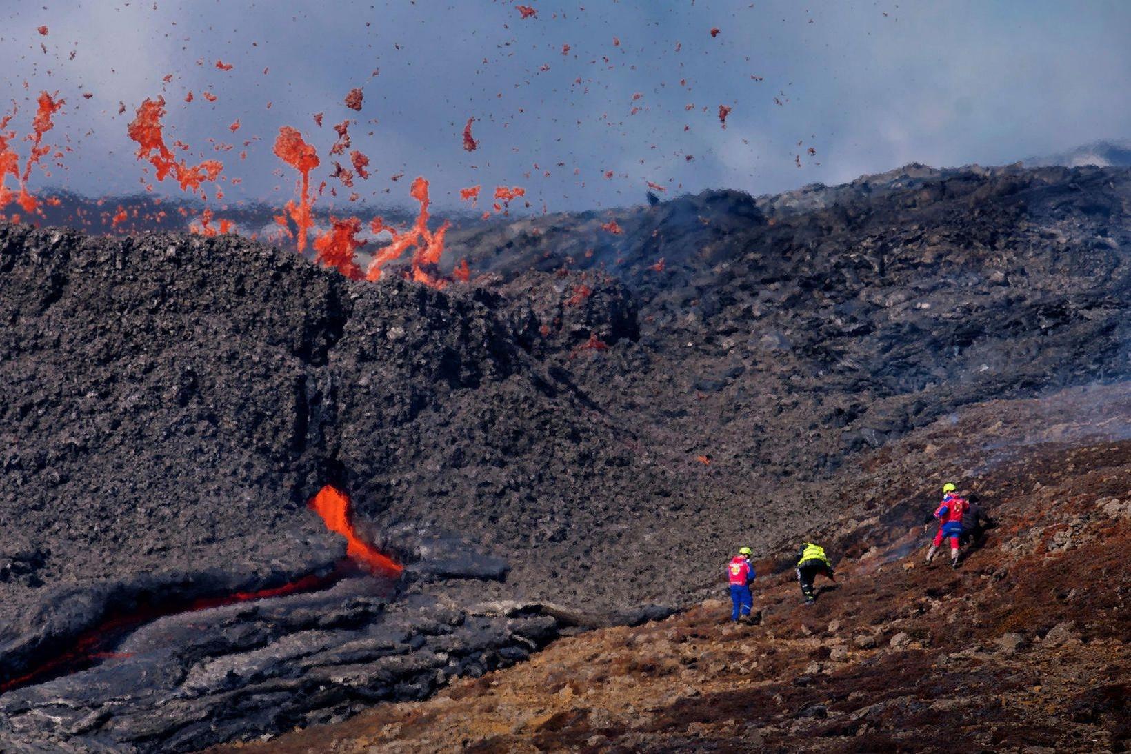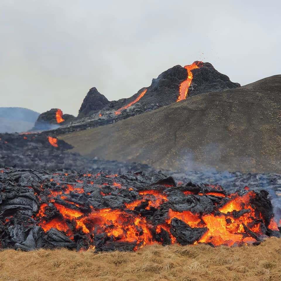 Это был милый, хорошо воспитанный туристический вулкан (правда, иногда газил неприлично). Летом решили, наконец, что ему пора дать имя. Выбирали всем миром и утверждали. Fagradalsfjall = «гора красивой долины» (вообще-то, гора уже была, сам вулкан — это не гора, кратеры и трещины образовались рядом с ней).