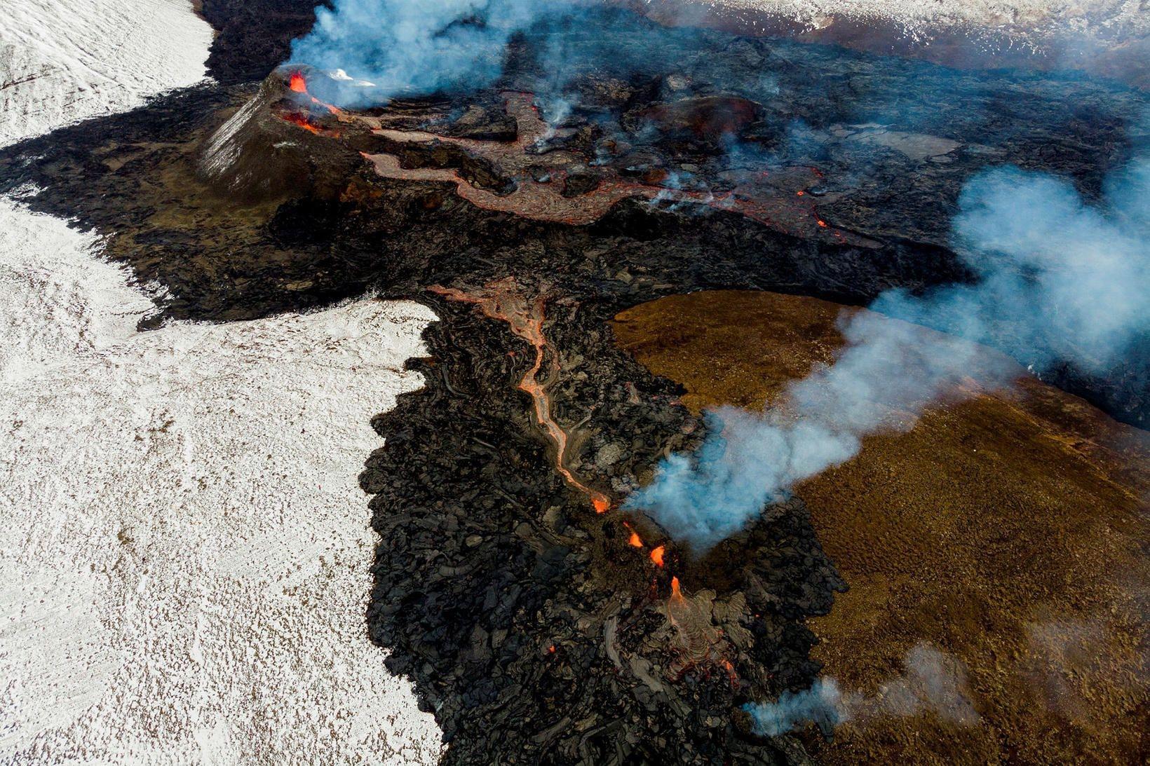Автор: Елена СтаниславоваВулкан Фаградальсфьядль начал извергаться в марте 2021 года. Если не путаю, в ночь с 19 на 20 (но тогда у него не было имени, естественно).
