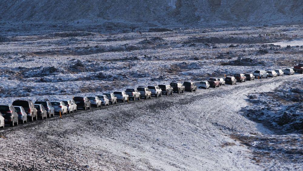 Пробка, образованная желающими сходить посмотерть на вулкан.