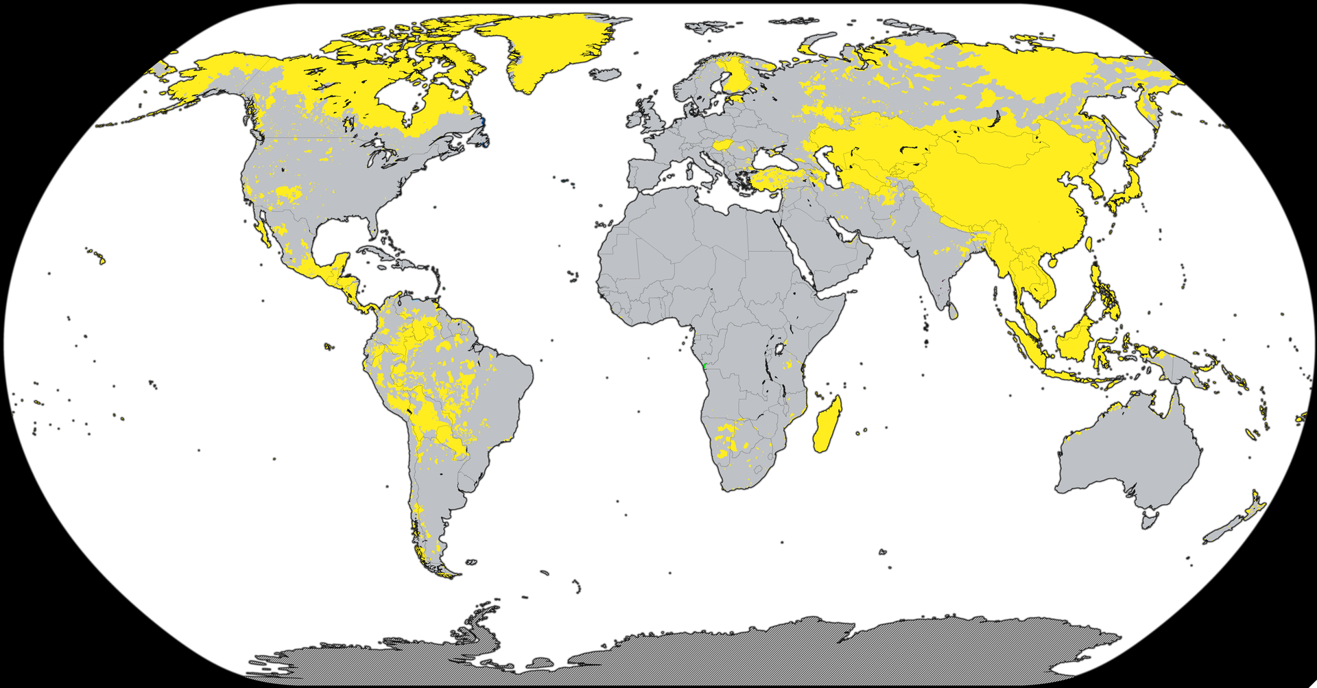 Желтым отмечена зона проживания людей с корнями, берущими начало в Восточной Азии