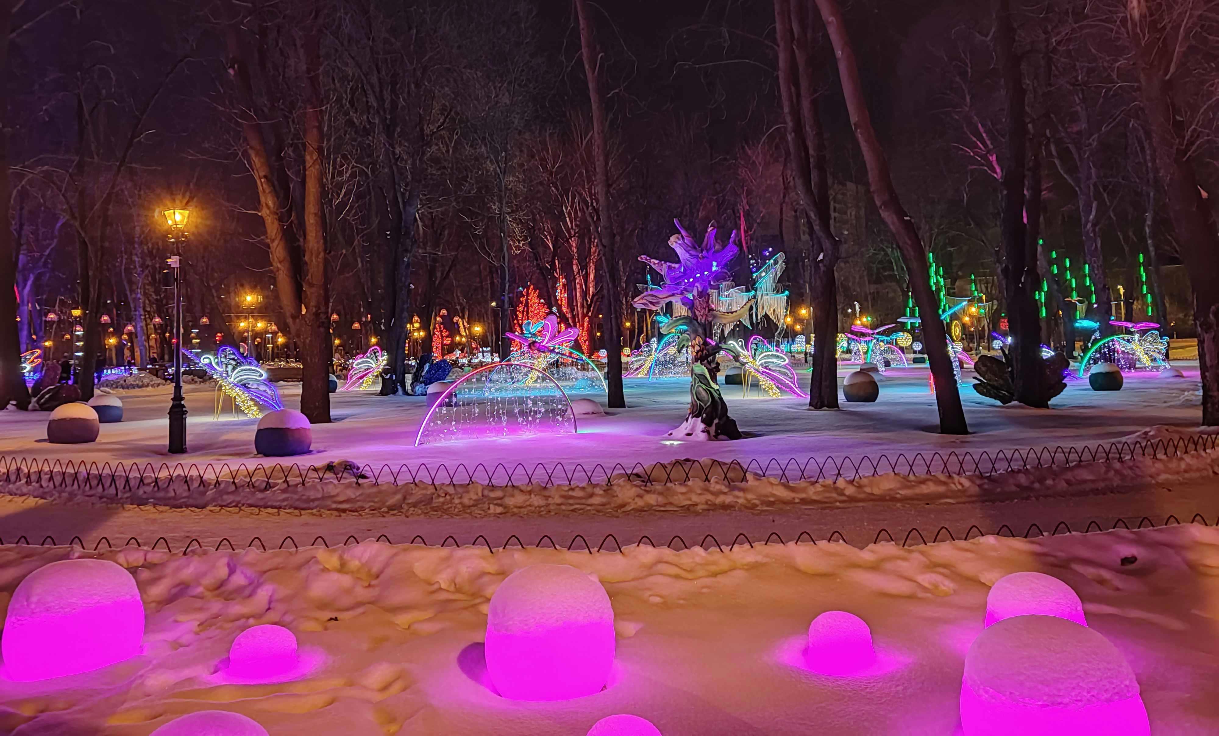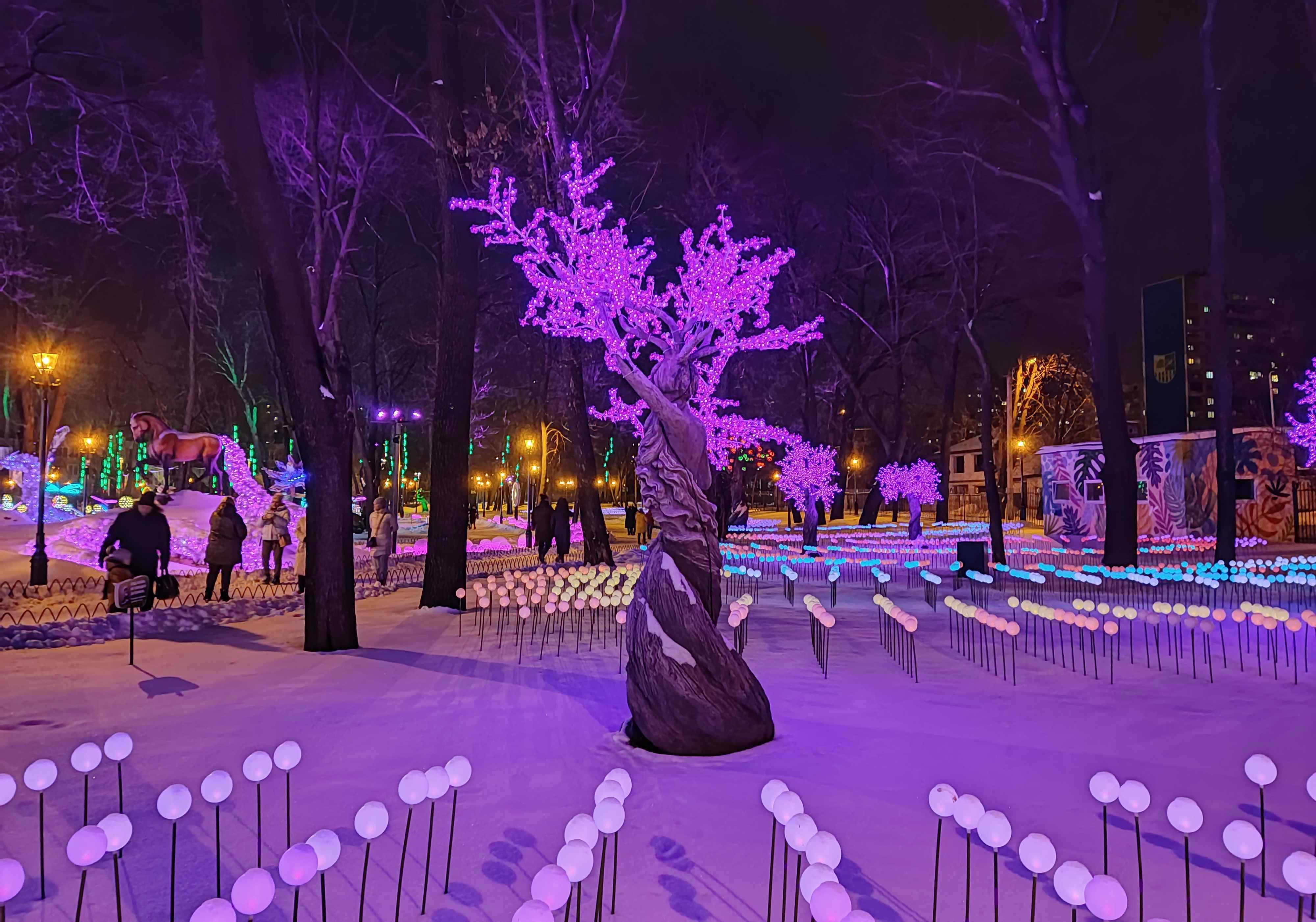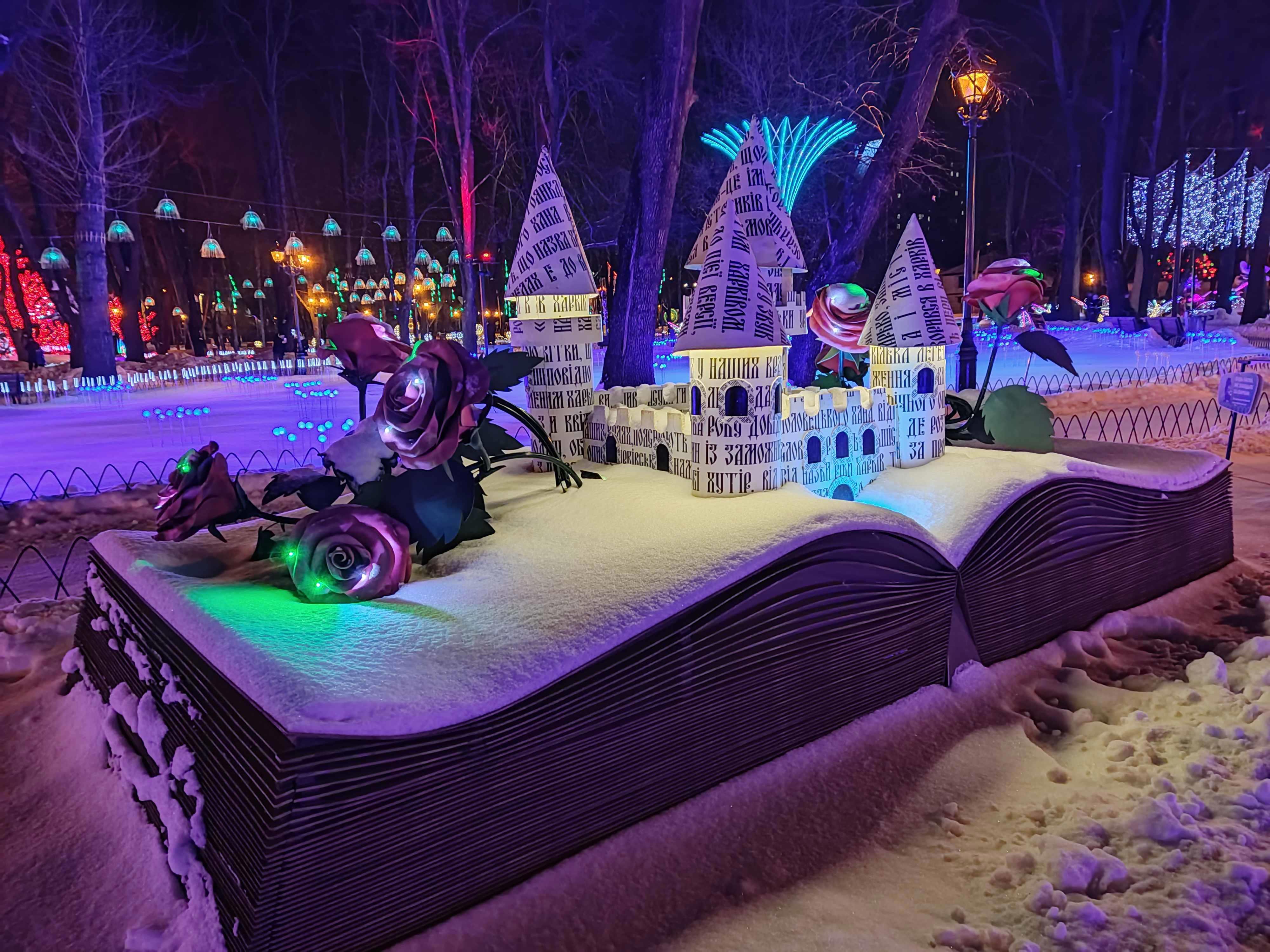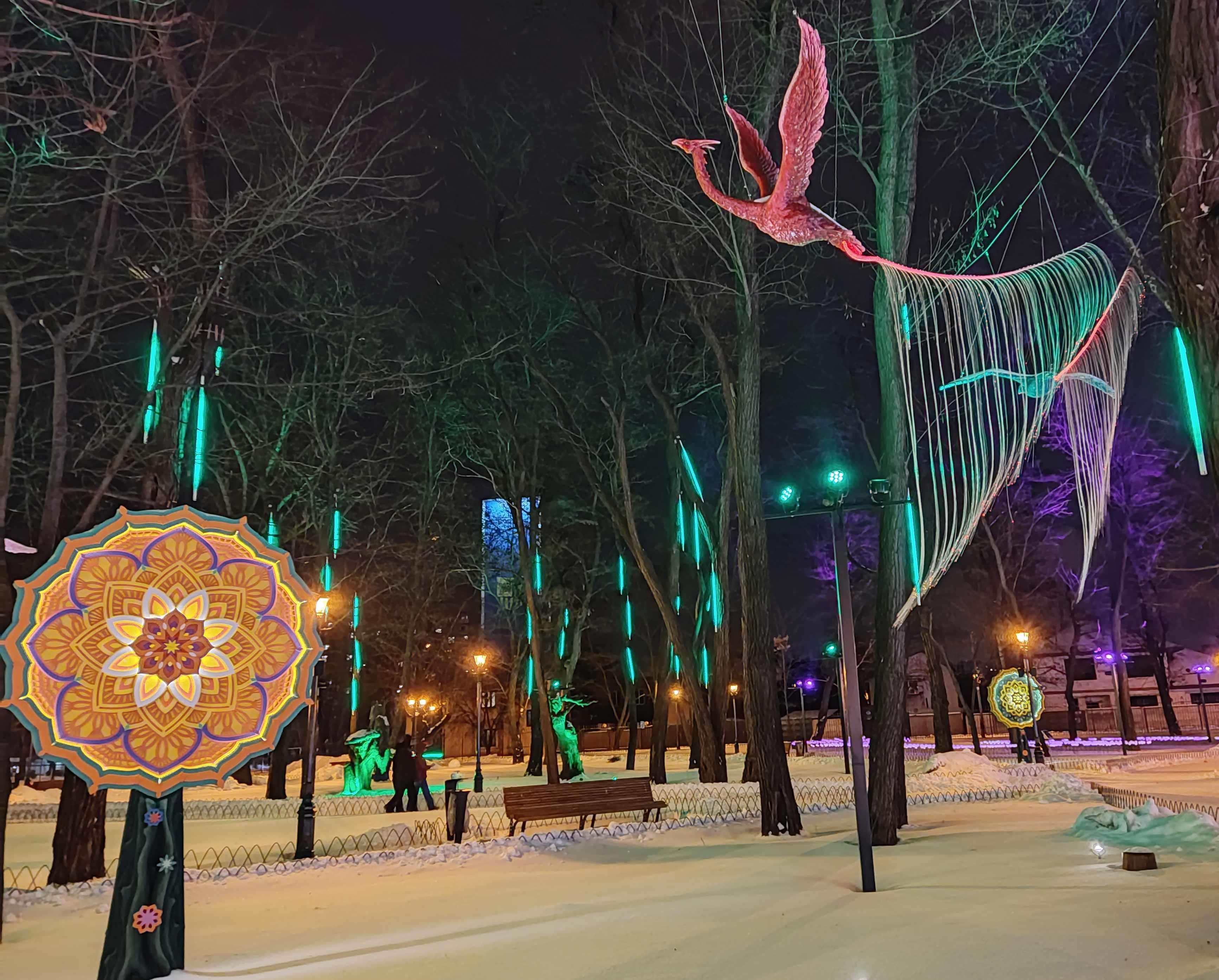Автор: Генри Лайон ОлдиВ Харкове открыли натуральный Фэнтези-Парк. Гулять в нём надо вечером, в темноте — когда всё в нём светится, сияет и переливается разноцветными огнями. Снег, зима, из динамиков звучит странная, медитативно-психоделическая музыка, на фоне которой слышится то птичий щебет, то воронье карканье, то плеск воды, то таинственные и зловещие скрипы, то посвист ветра. А вокруг...