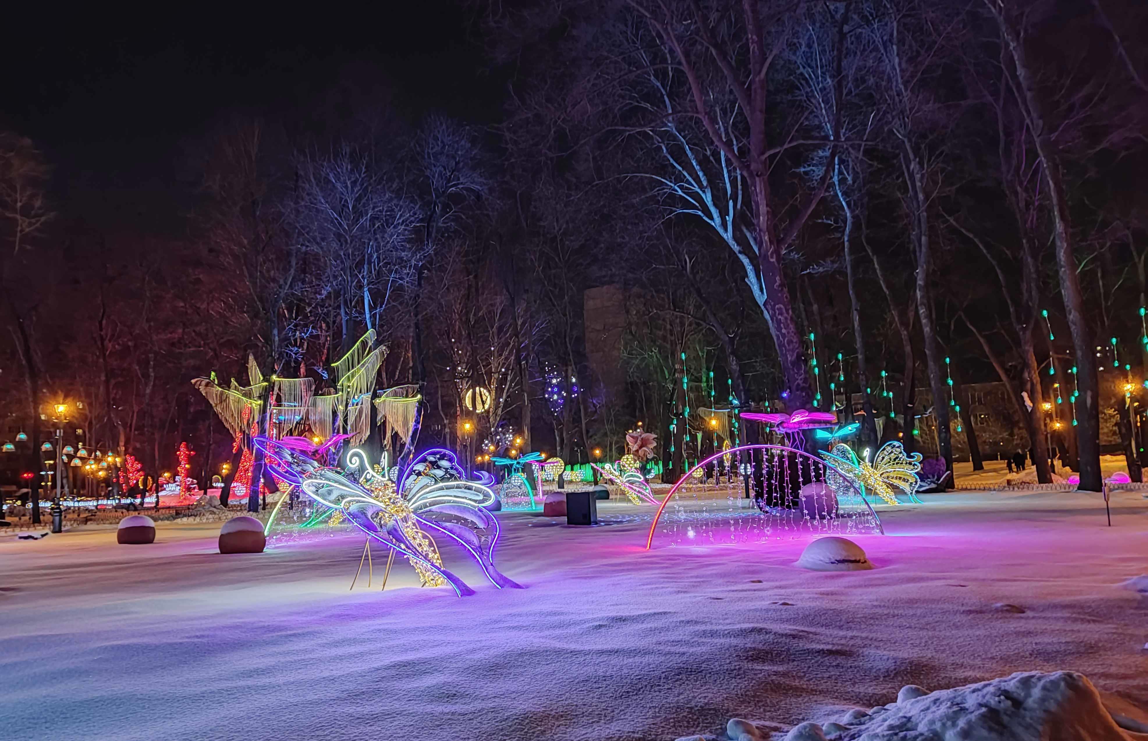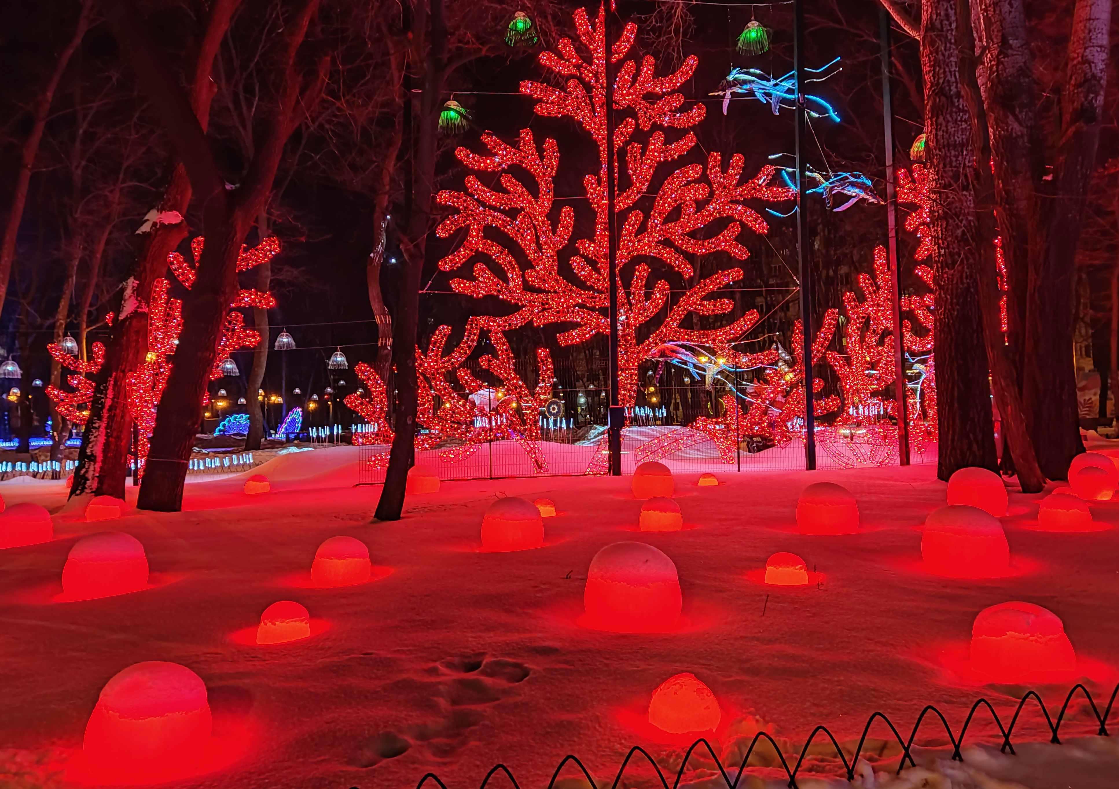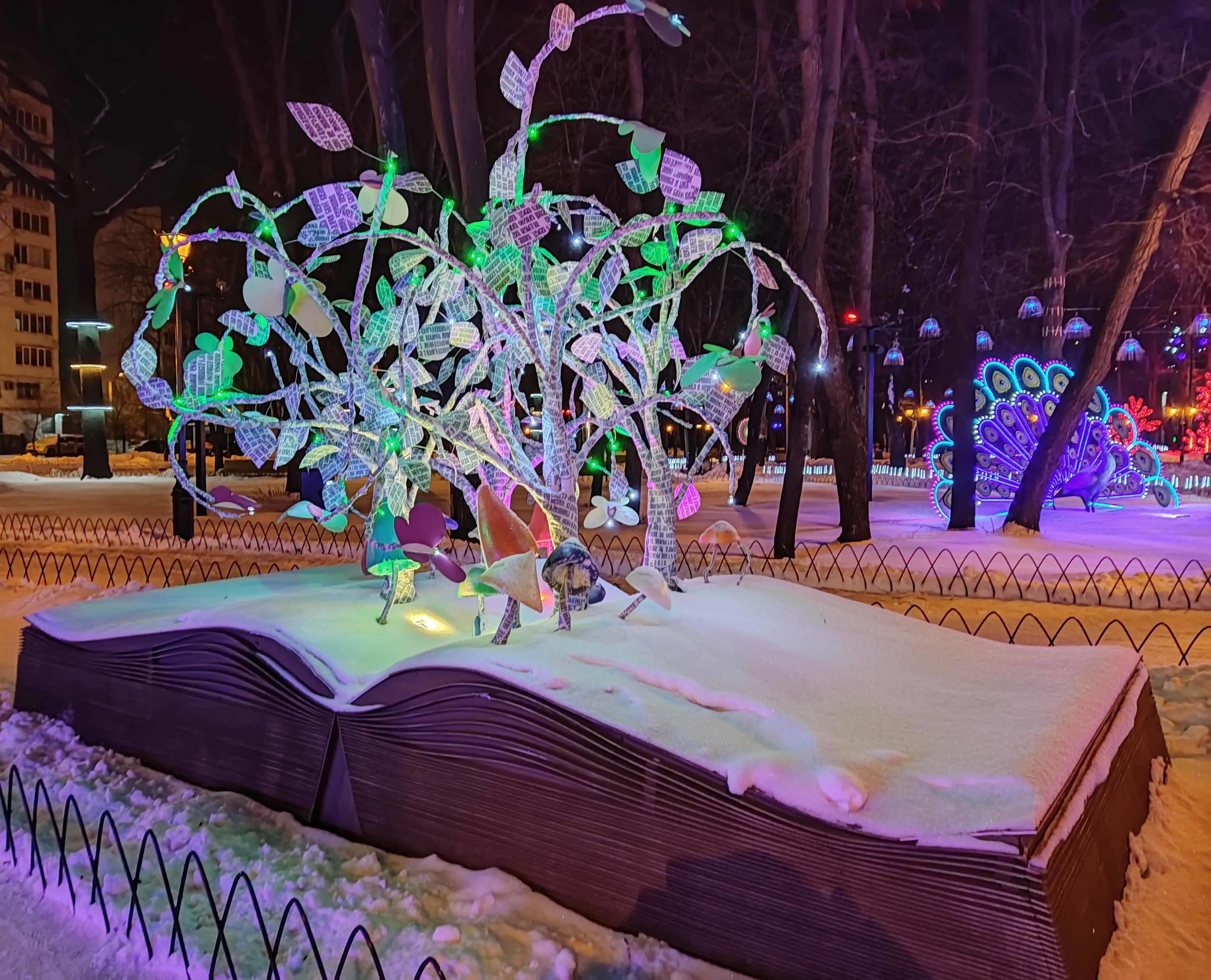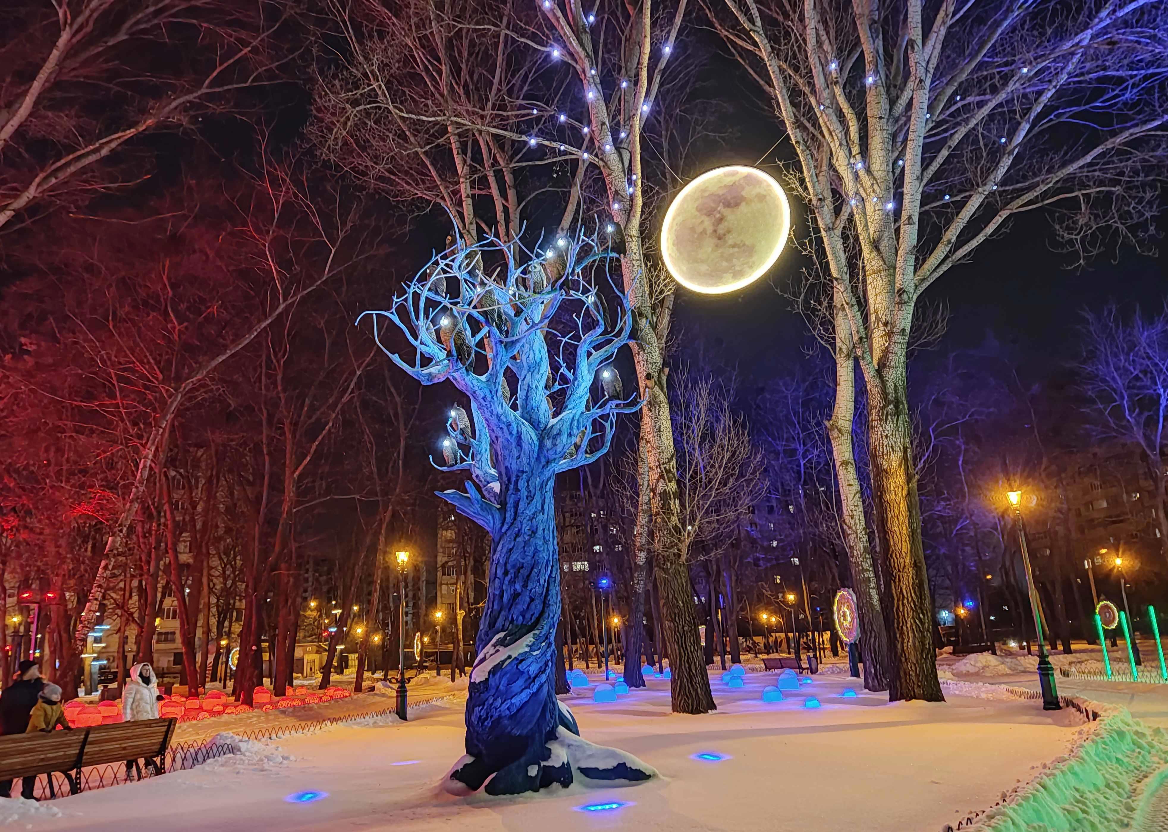 Автор: Генри Лайон ОлдиВ Харкове открыли натуральный Фэнтези-Парк. Гулять в нём надо вечером, в темноте — когда всё в нём светится, сияет и переливается разноцветными огнями. Снег, зима, из динамиков звучит странная, медитативно-психоделическая музыка, на фоне которой слышится то птичий щебет, то воронье карканье, то плеск воды, то таинственные и зловещие скрипы, то посвист ветра. А вокруг...