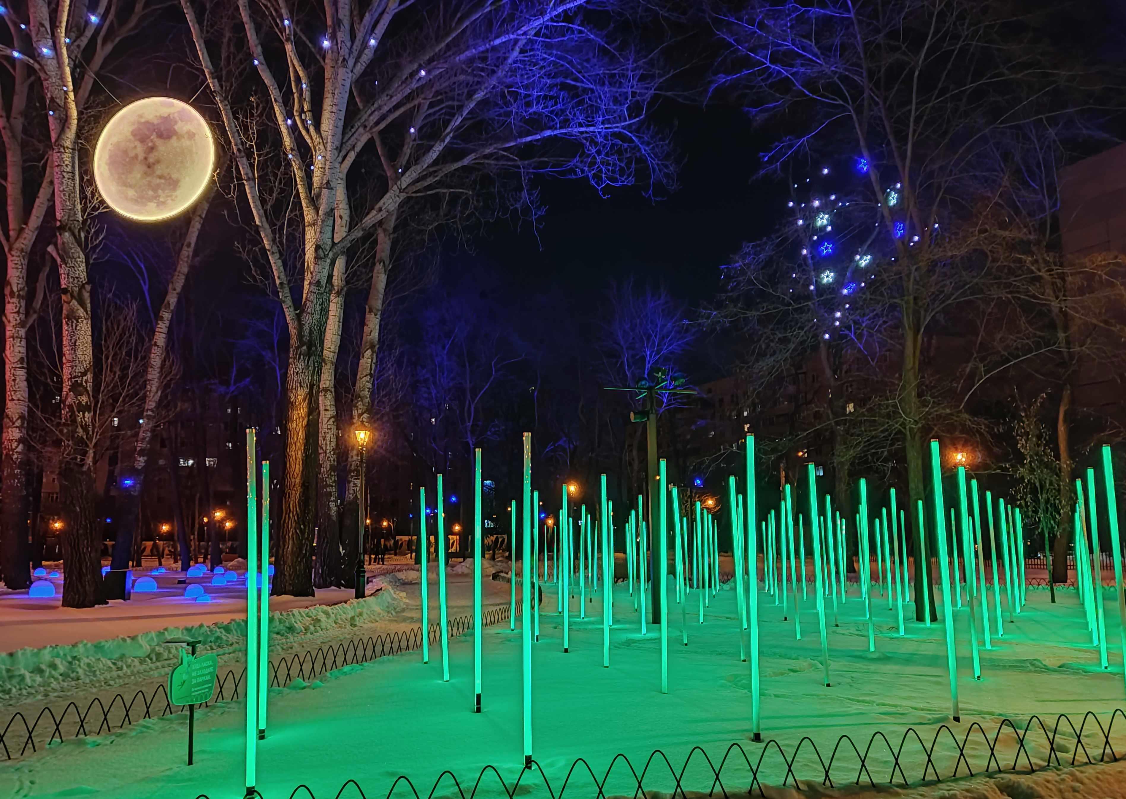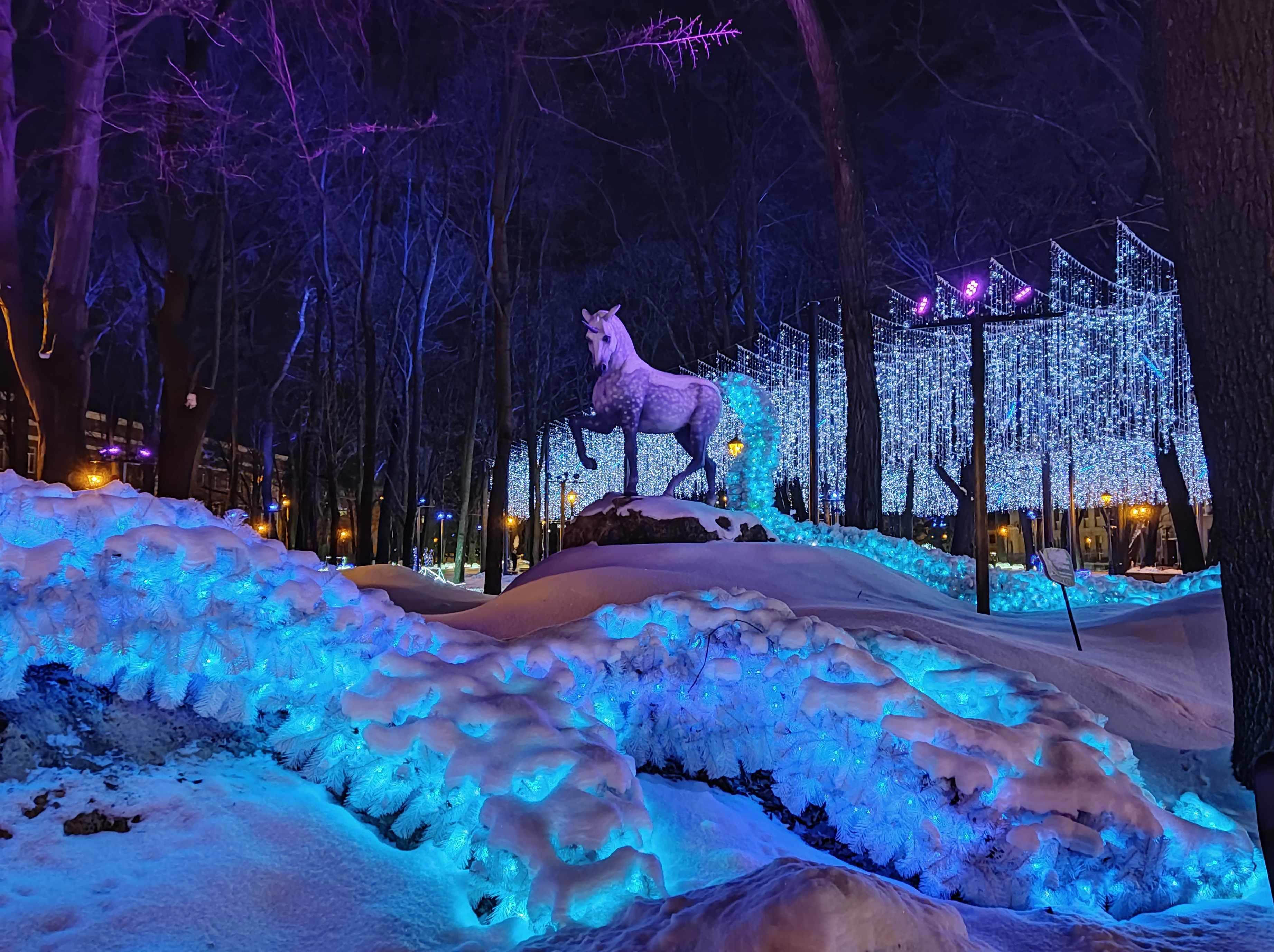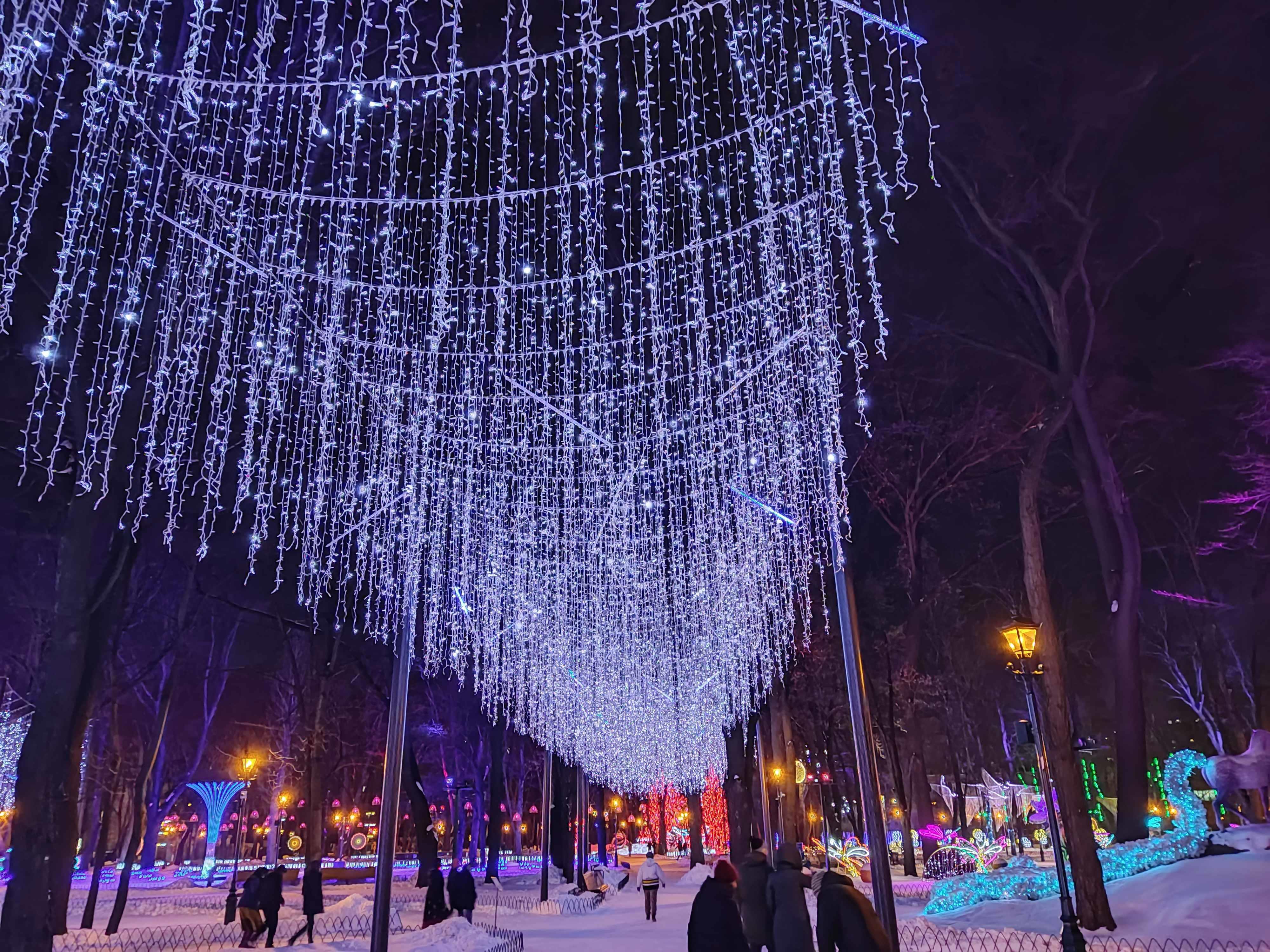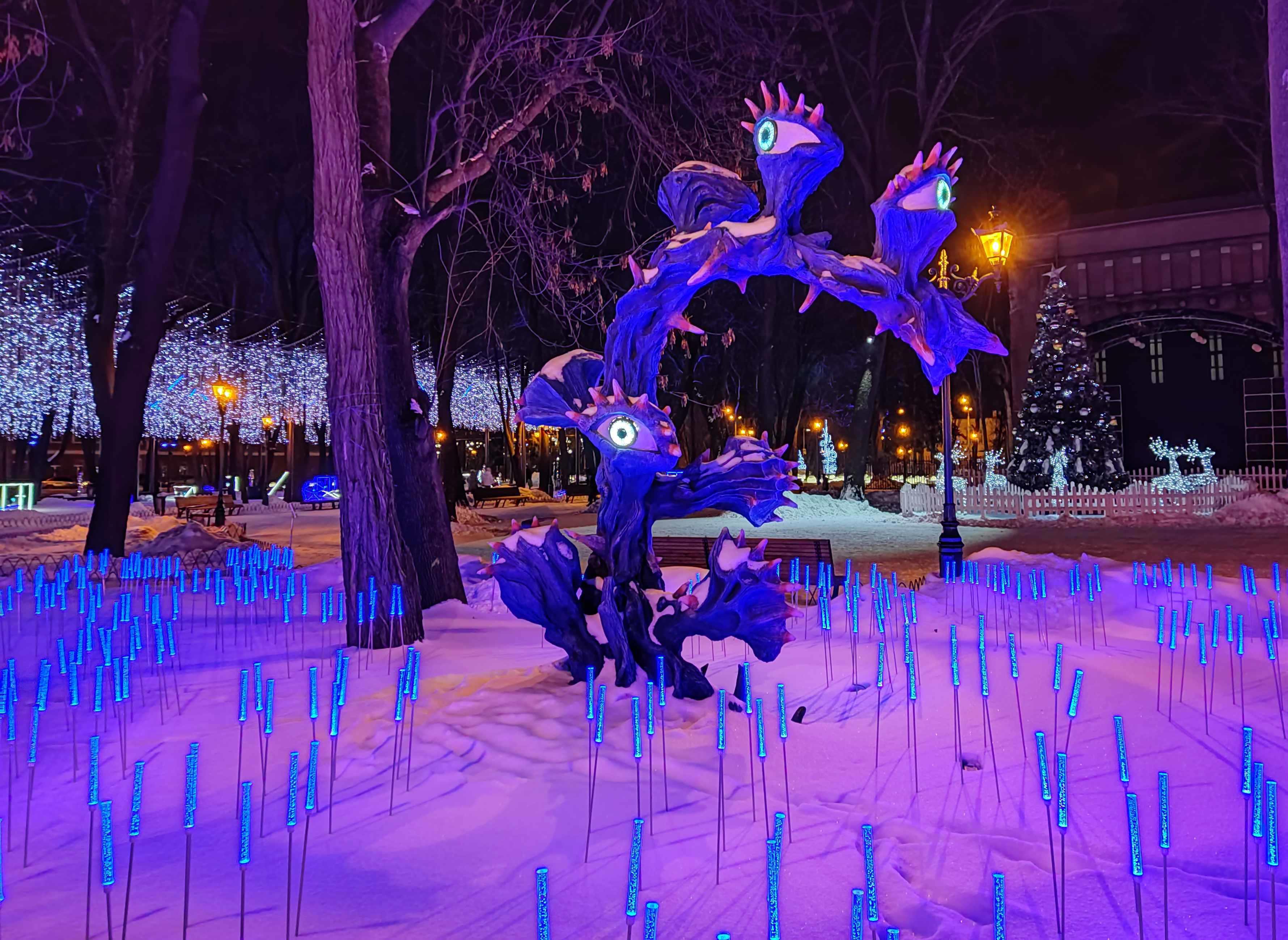 Автор: Генри Лайон ОлдиВ Харкове открыли натуральный Фэнтези-Парк. Гулять в нём надо вечером, в темноте — когда всё в нём светится, сияет и переливается разноцветными огнями. Снег, зима, из динамиков звучит странная, медитативно-психоделическая музыка, на фоне которой слышится то птичий щебет, то воронье карканье, то плеск воды, то таинственные и зловещие скрипы, то посвист ветра. А вокруг...