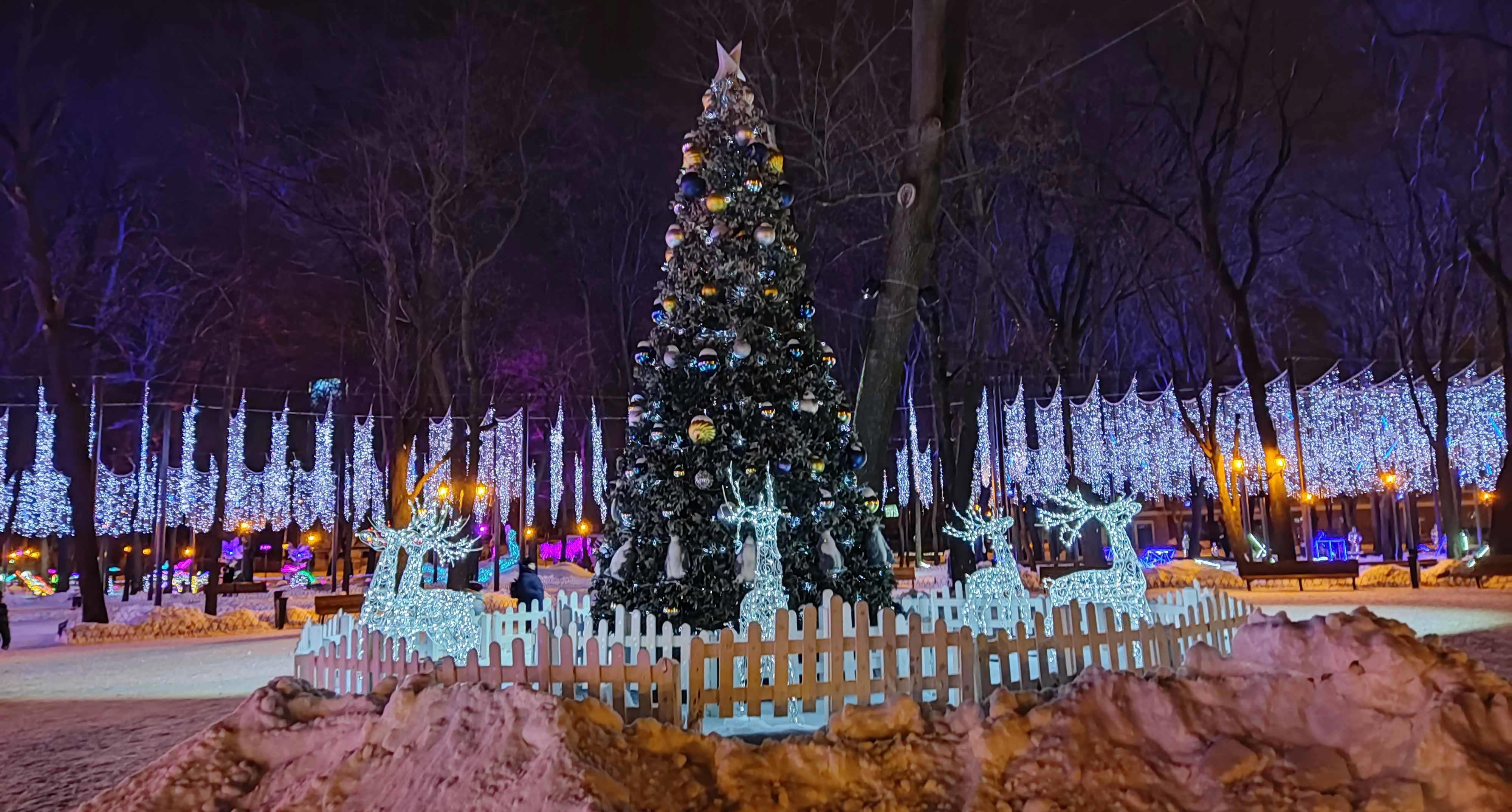 Ну какой же зимний парк без ёлки с оленями?!