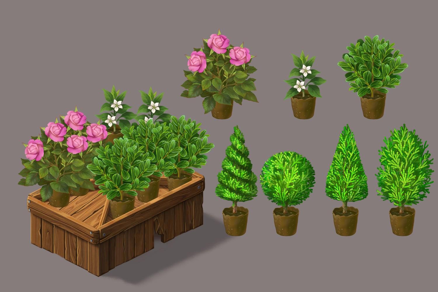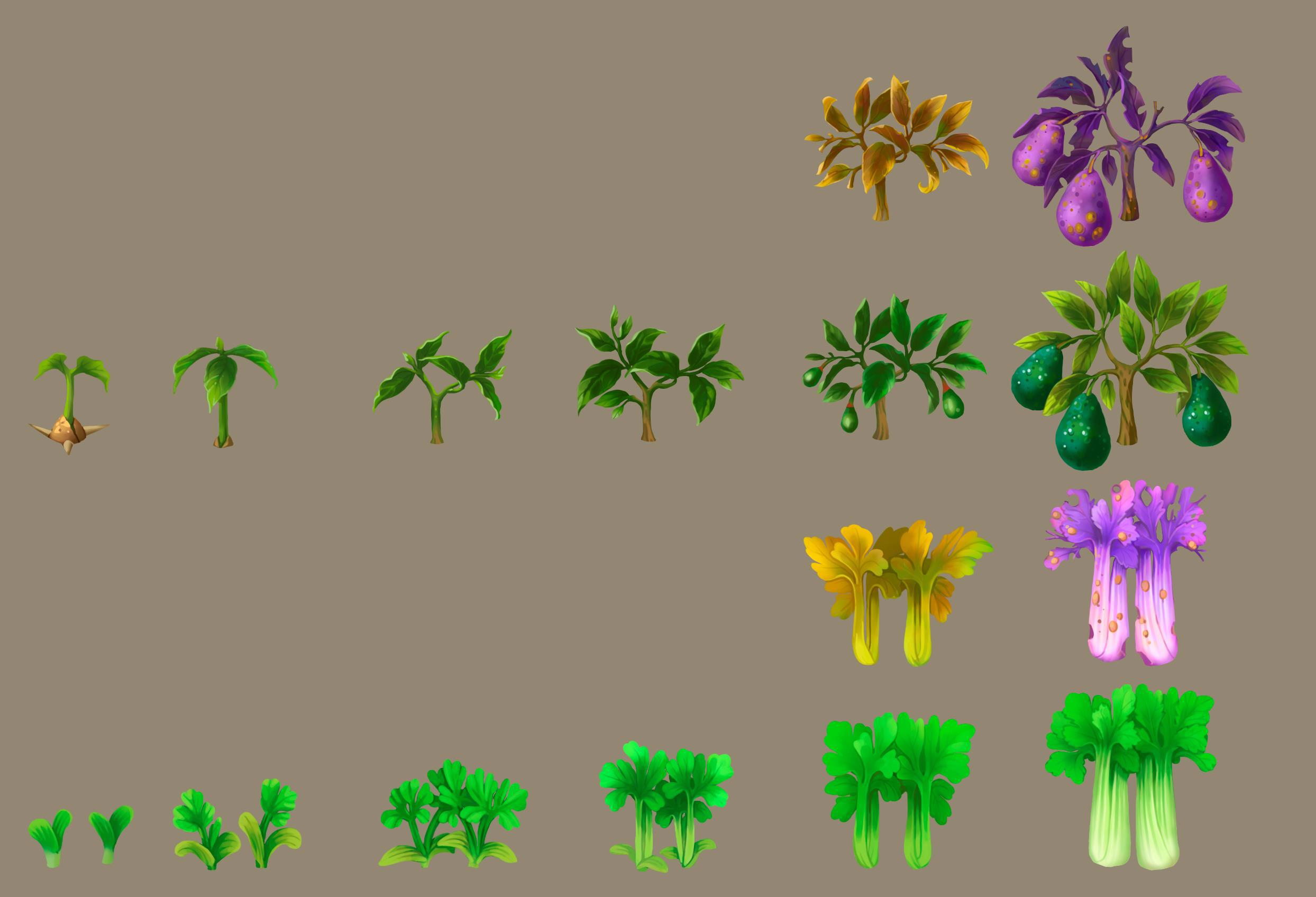Ох, как же меня тогда все эти огородные овощи-фрукты-цветочки от всходов до готовности задолбааали! :) Семь локаций, на каждой по 4 растения, на каждое по 8 состояний! Ну да ничего, любой каприз за деньги работадателя :).