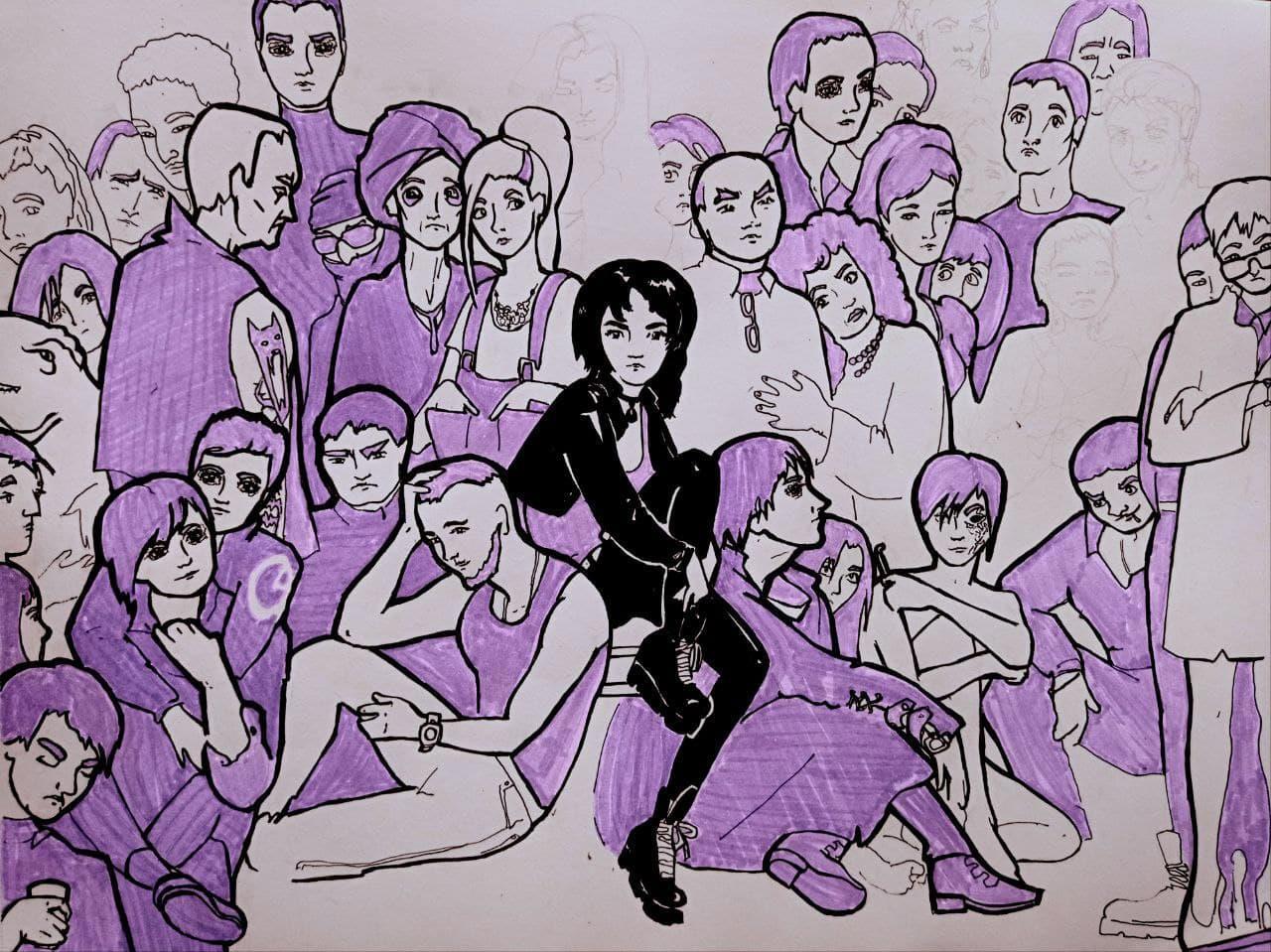 Ну а пока хочу показать ту единственную иллюстрацию, что менялась с каждой главой и наполнялась персонажами.