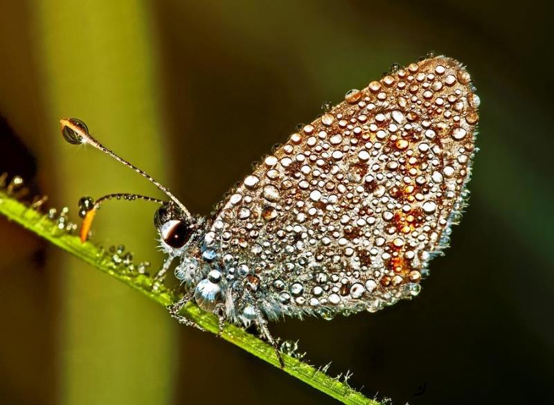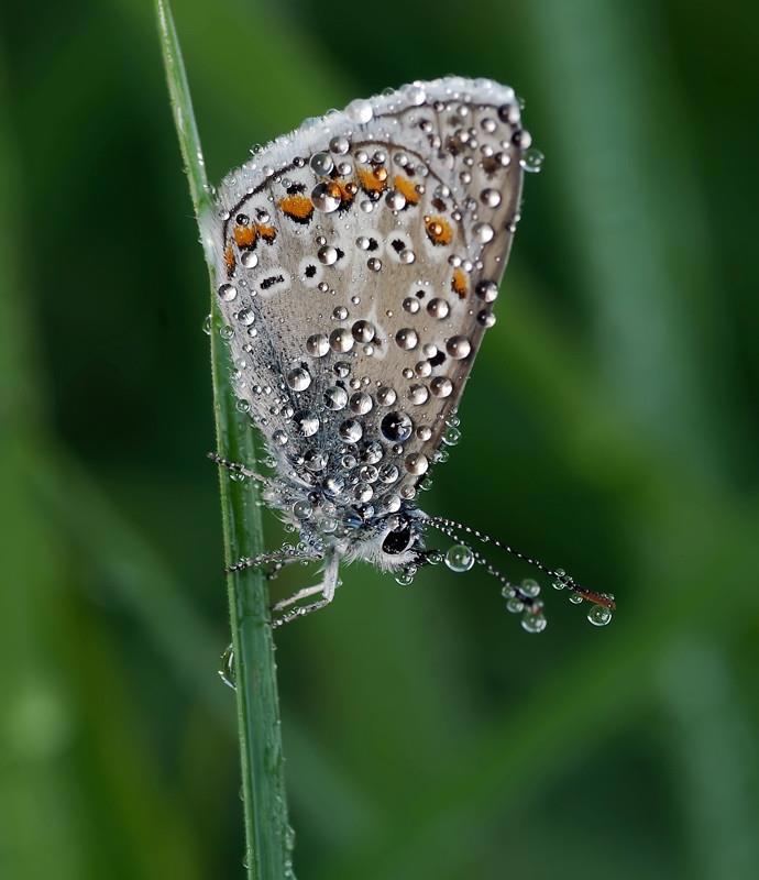 Бабочка в капельках росы, словно драгоценная брошка
