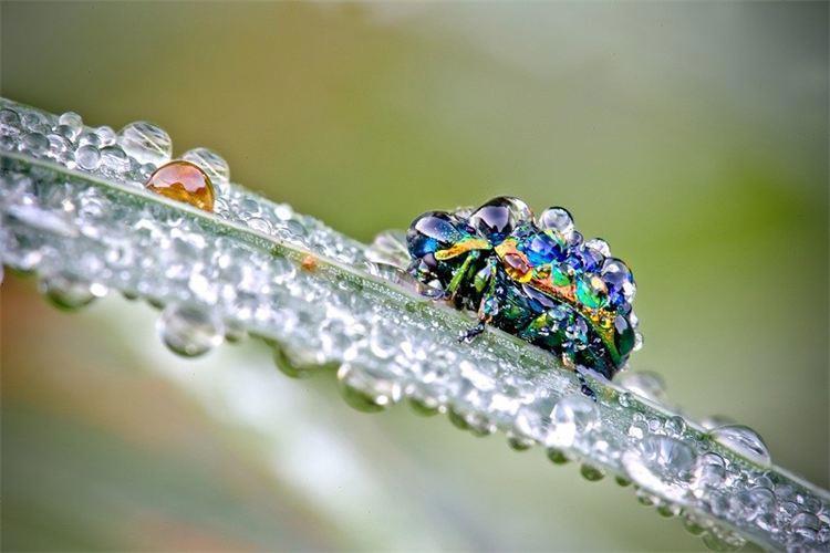 Жук в капельках росы