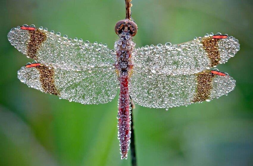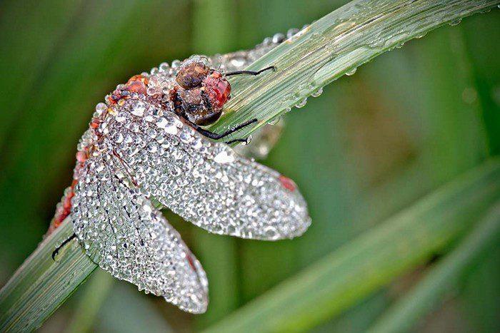 Стрекоза в бриллиантовых капельках росы