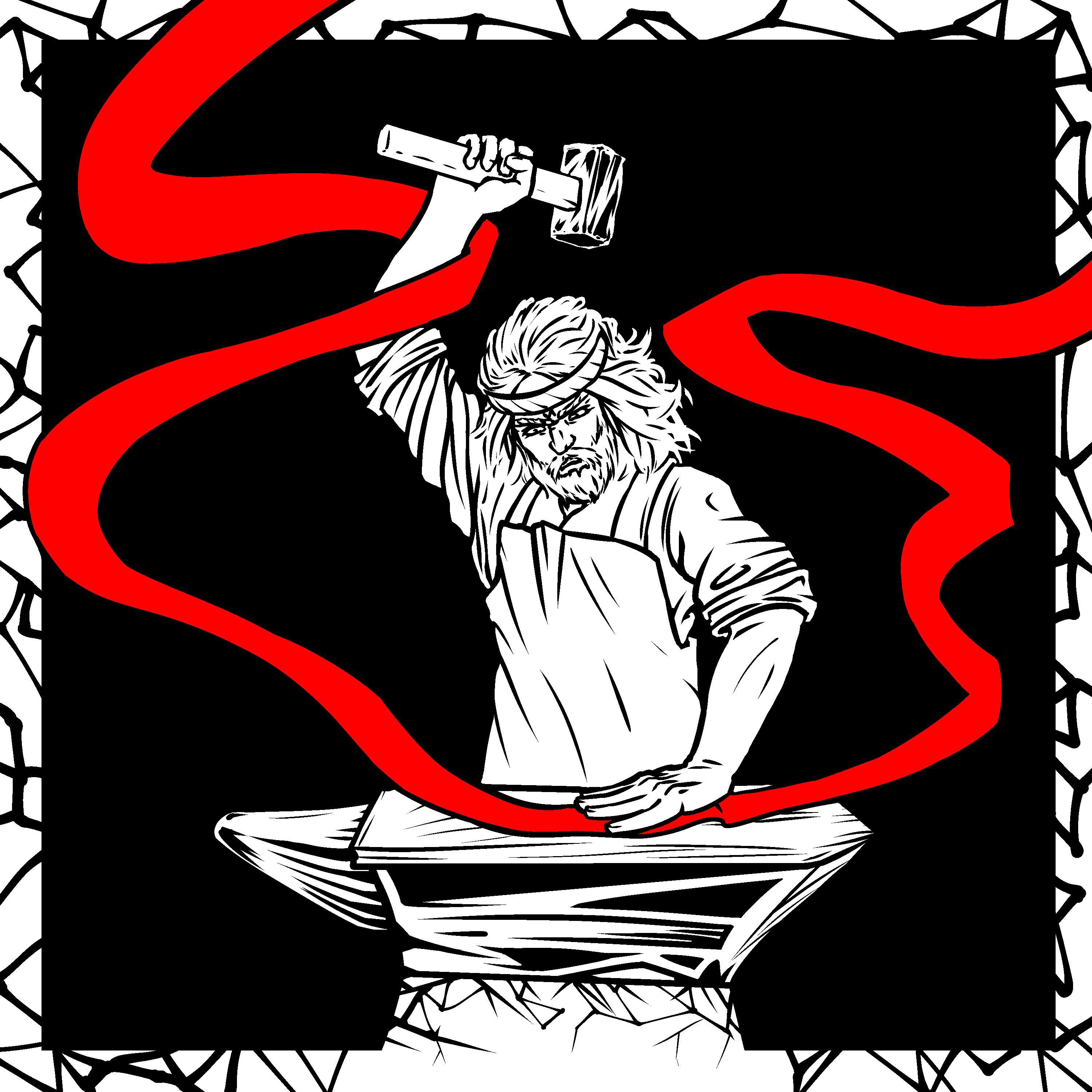 И тут через пару недель мне пишет новый заказчик. Задача проста, сделать русича кузнеца на основе уже существующего логотипа для некоммерческого переиздания старого музыкального альбома.