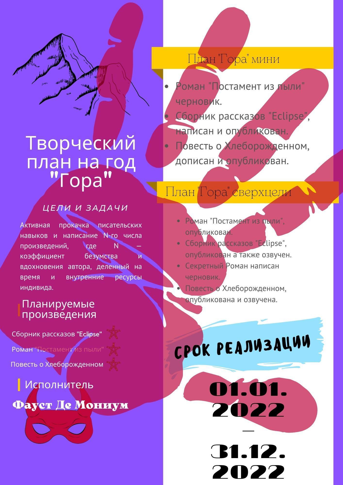 Автор: Фауст Де МониумПора бы огласить планы на 2022 год. Скромно, со вкусом. Дел много, так что будем превозмогать, очень надеюсь на поддержку своих редки читателей