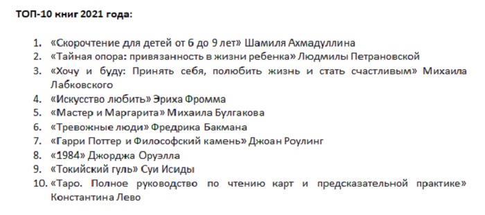 ТОП-10 книг 2021 года по количеству продаж. Источник: Wildberries