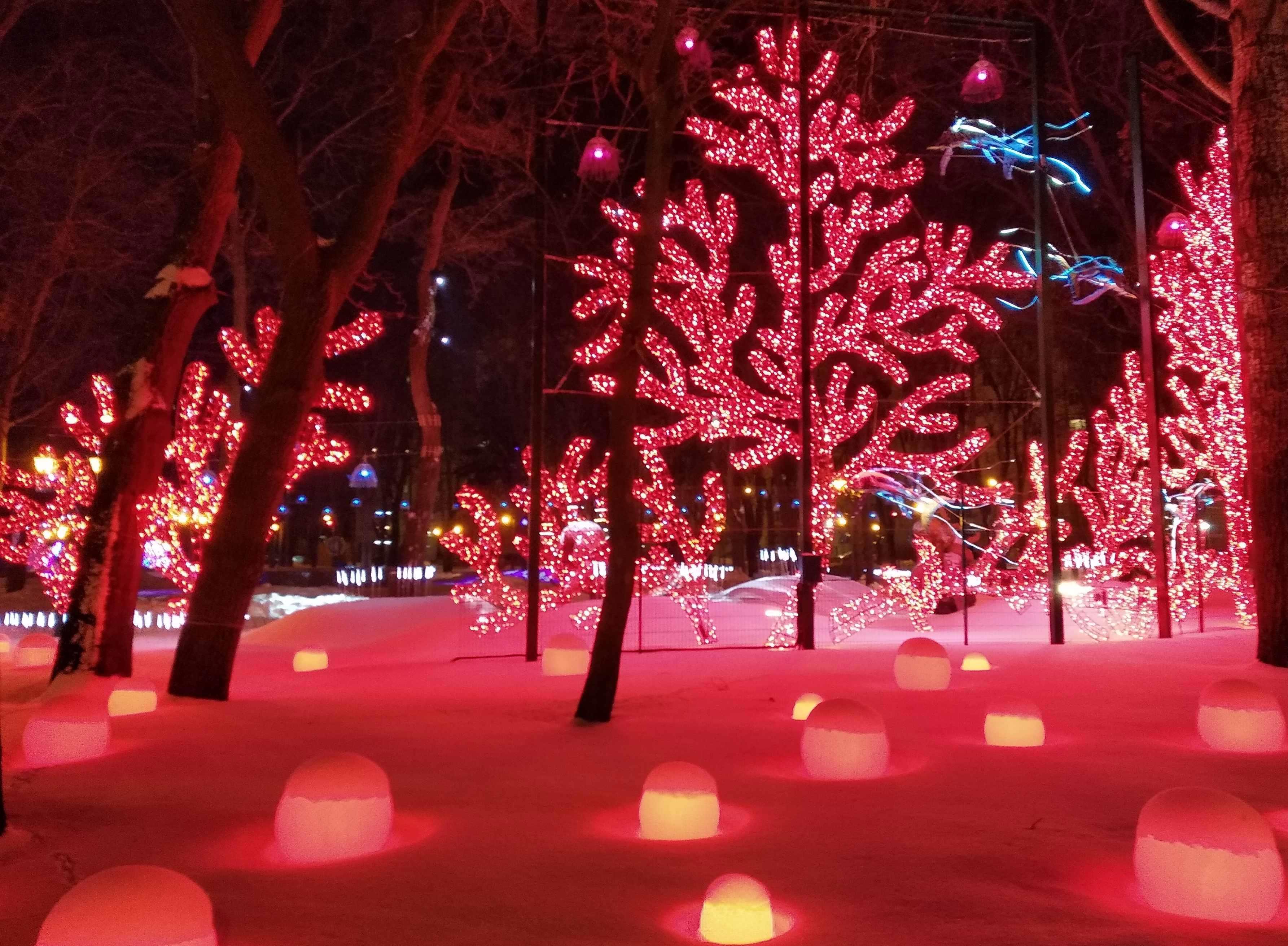 Кроваво-красные деревья на фоне угольно-чёрных небес. Красиво и немного зловеще...