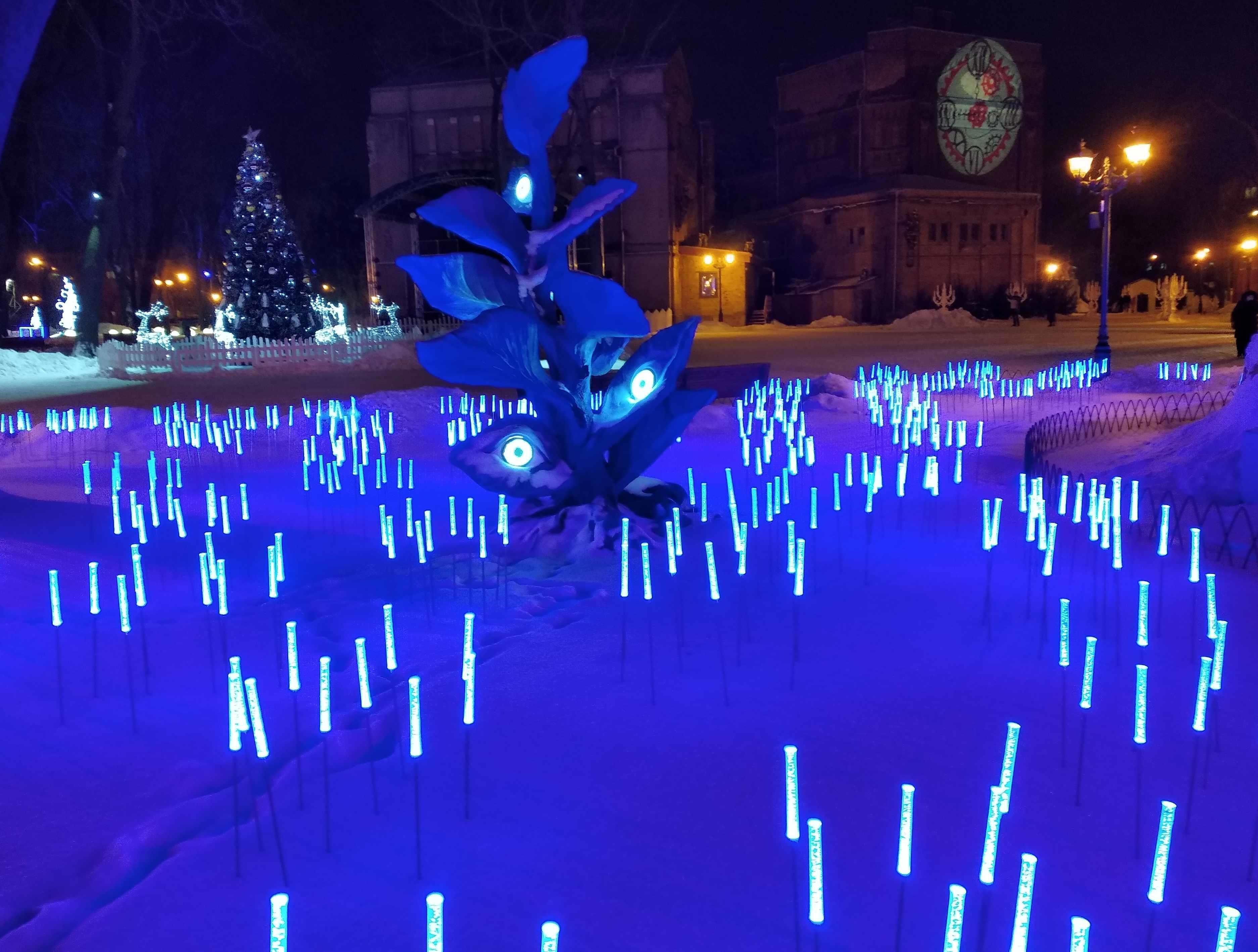 Магический фонтан, глаза на ножках, на заднем плане — марсианские деревья и морские анемоны-актинии в качестве светильников.