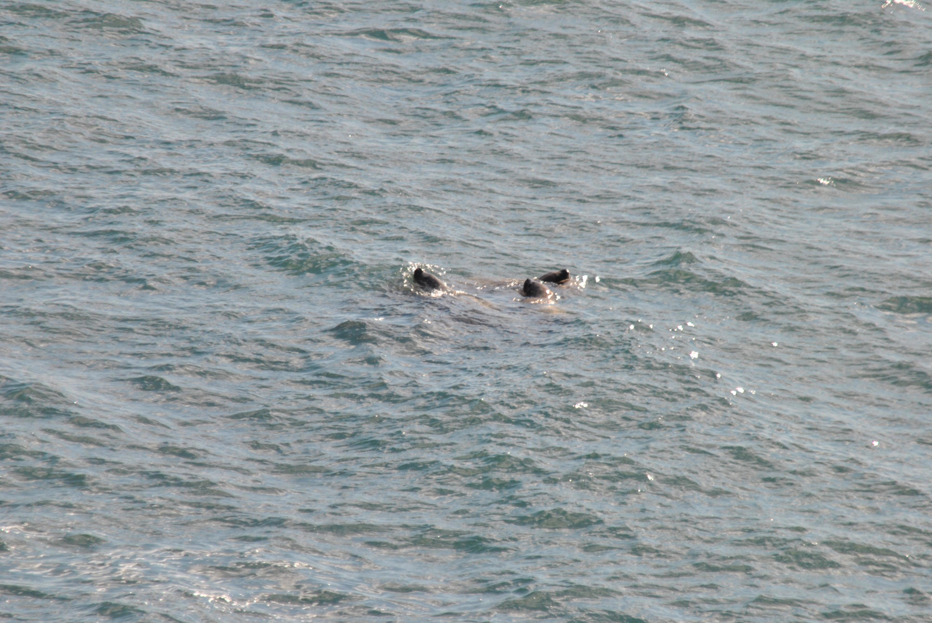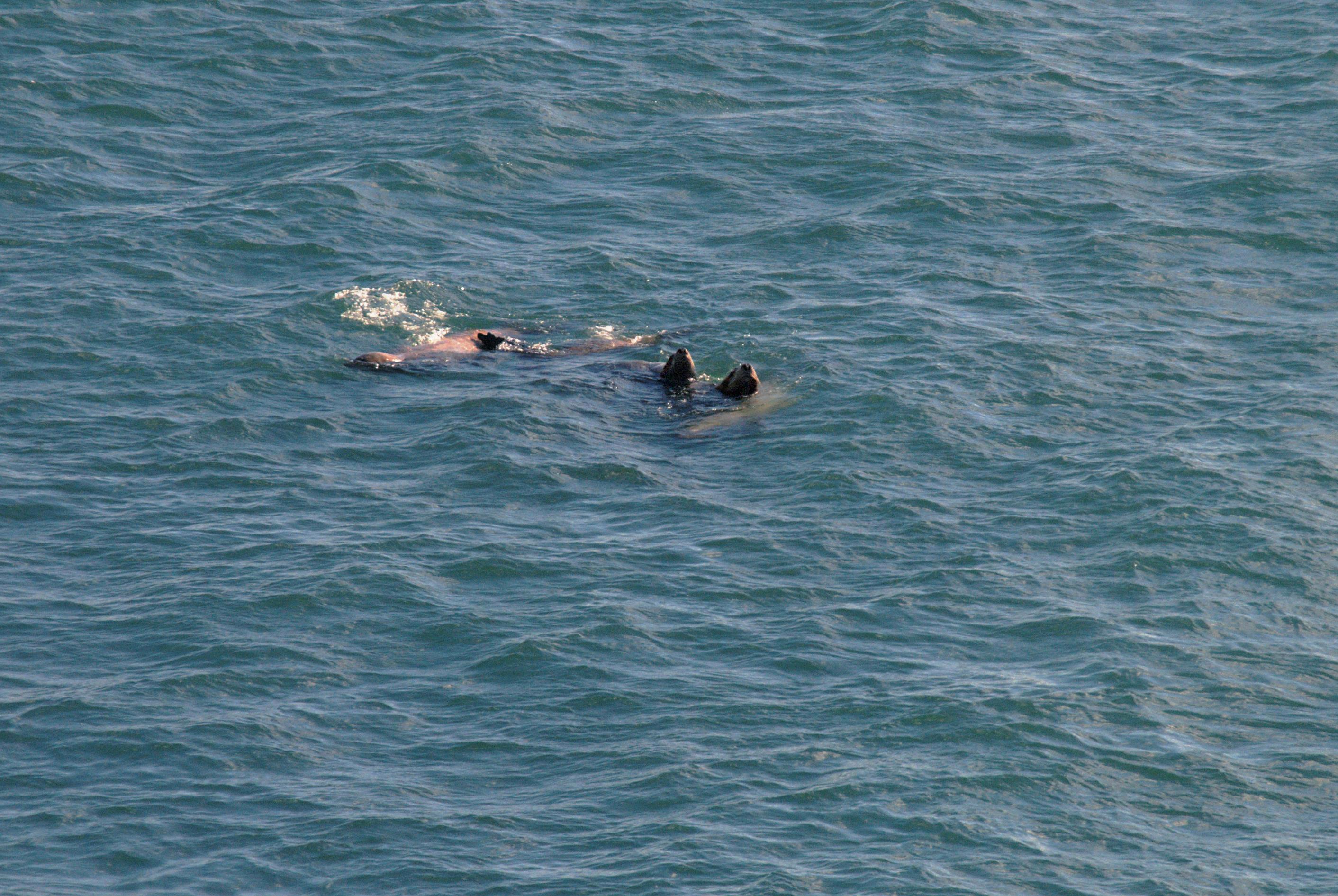Зато приплыли пять сивучей. Четверо держались тесной группой - трое вообще друг от друга не отходили, четвертый ходил кругами метрах в десяти-пятнадцати. Пятый вообще делал вид, что он не с ними, и троллил нас, появляясь на поверхности ровно на то время, чтобы успеть его увидеть - но никак не навестись...)