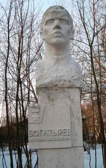 - Памятник-бюст Василию Богатыреву в городе Устюжна, райцентре Вологодской области – на малой родине героя