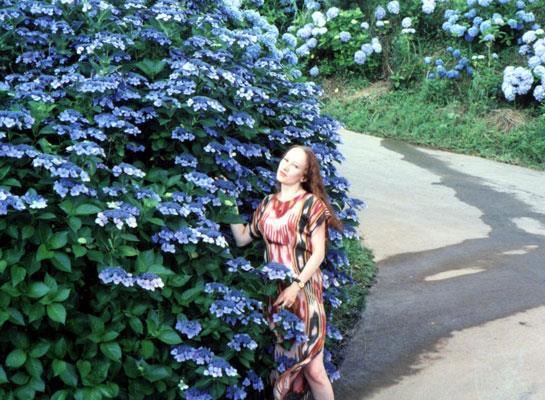 И правда, местечко куда завез меня фотограф, было словно выдернуто из какого-то полузабытого сна или сказки. Горы были буквально покрыты синими юниями (то есть июньскими цветами). Ощущение чуда добавляло и то, что на дворе стояла середина августа. Что цветы, связанные с началом лета, сохранили свою красоту в неприкосновенности — это было удивительным даже для японцев.