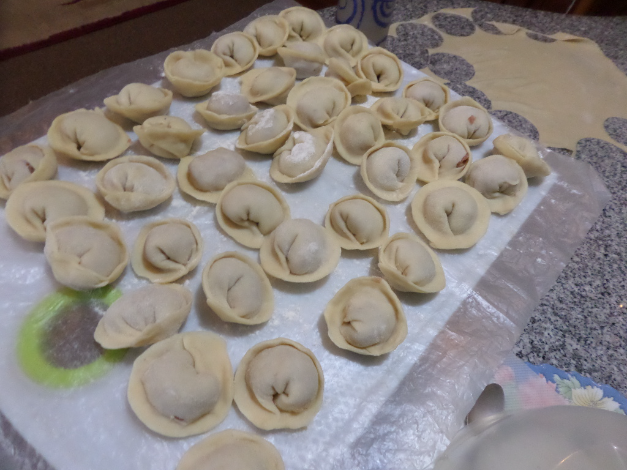 В общем, набегалась я сегодня, как цуцик за своим хвостом. Пришла наверх, а Кузя сидит на столе и мой фаршик жрет. Да твою налево, а ну иди отцеда, сил уже никаких нету ни на вас, ни на пельмени. Вот жеж блин. Налепила пельмешиков. Глаза б мои не видели. Тут уже и муж пришел, я как на скипидаре, быстро полепила немного, чтоб хоть пообедать, булочки разделала и в духовку сунула. Это все, что успела. Все. Меня не кантовать. Нету меня.