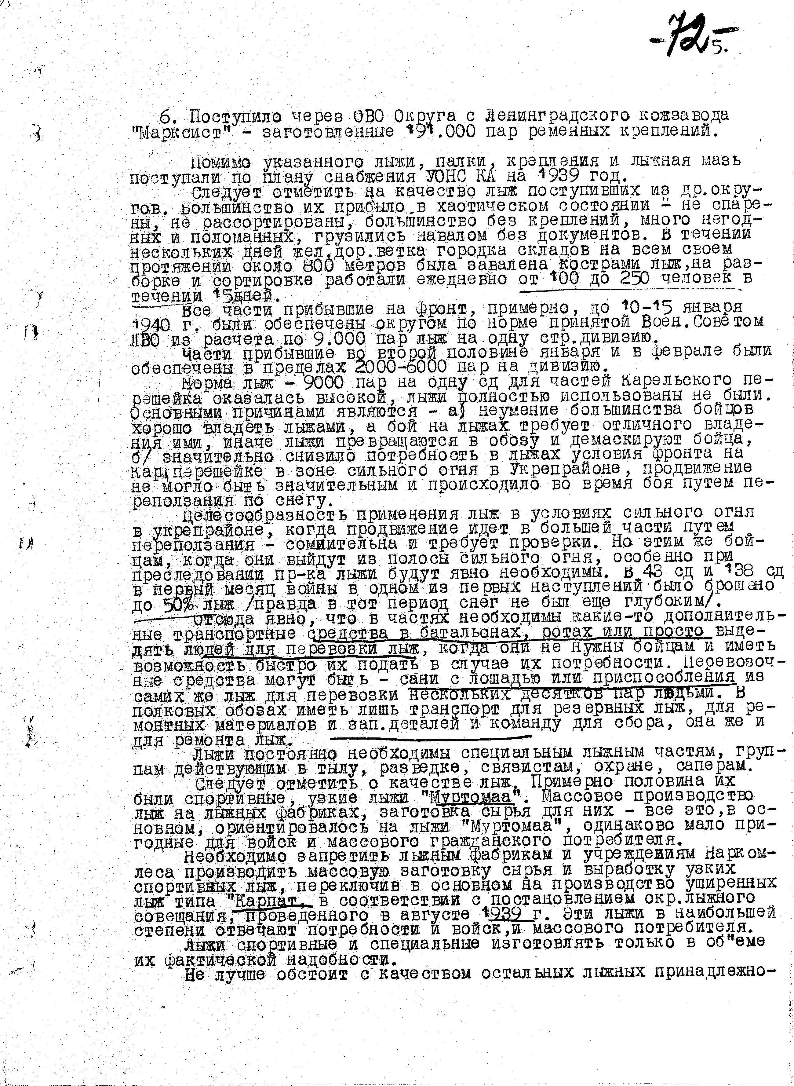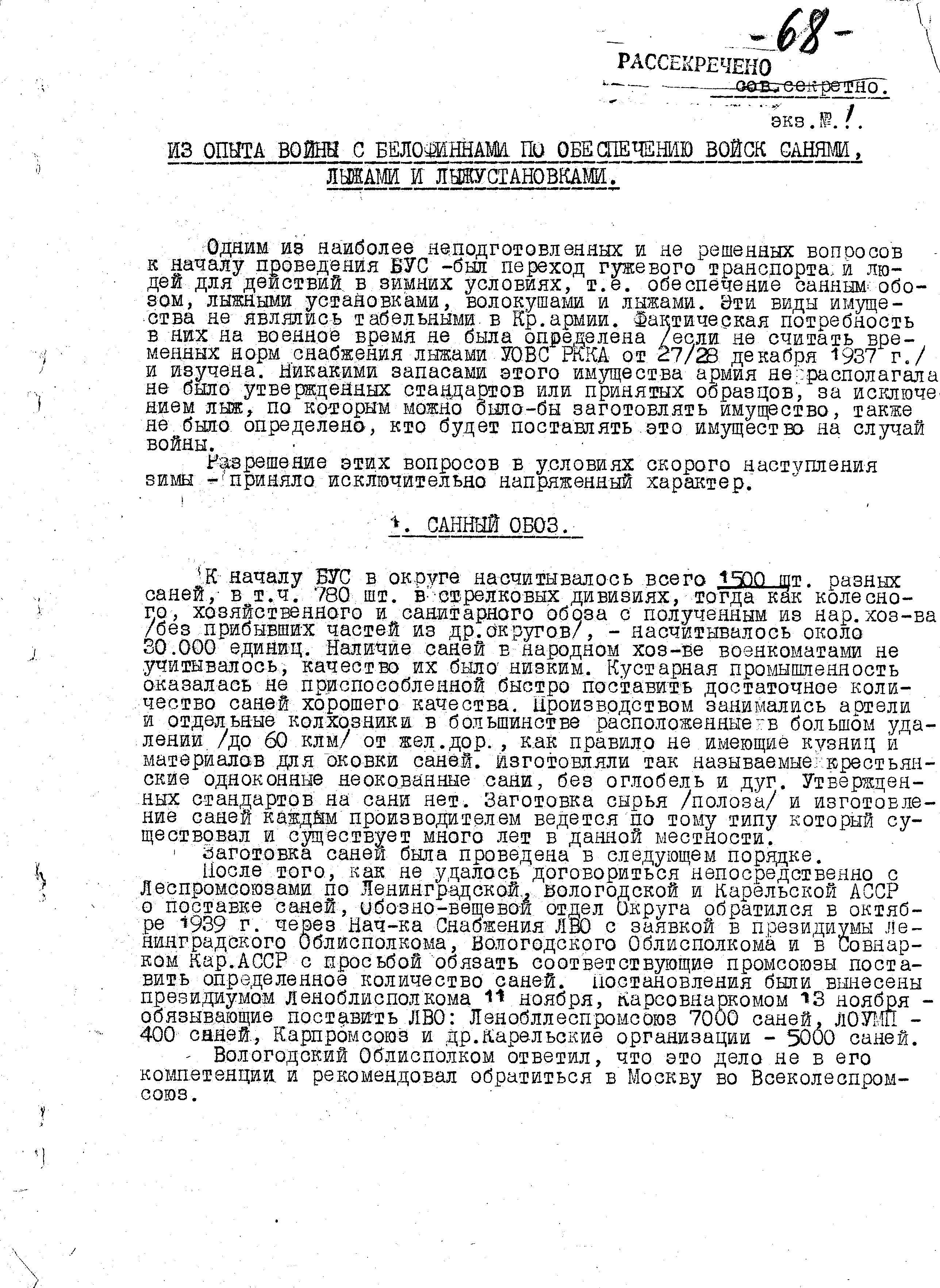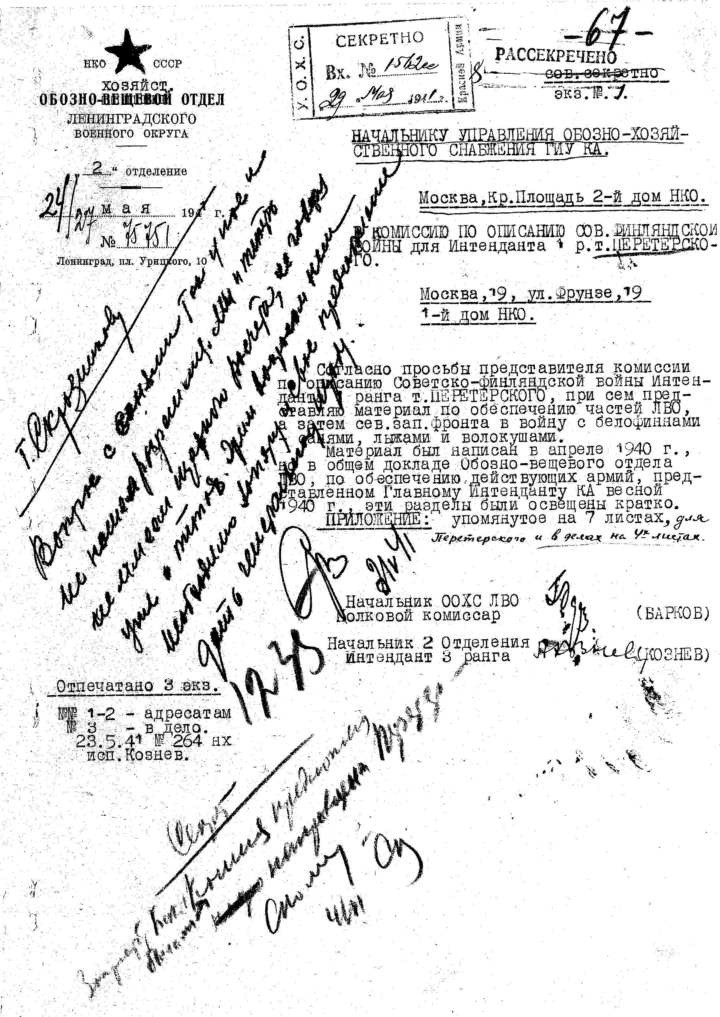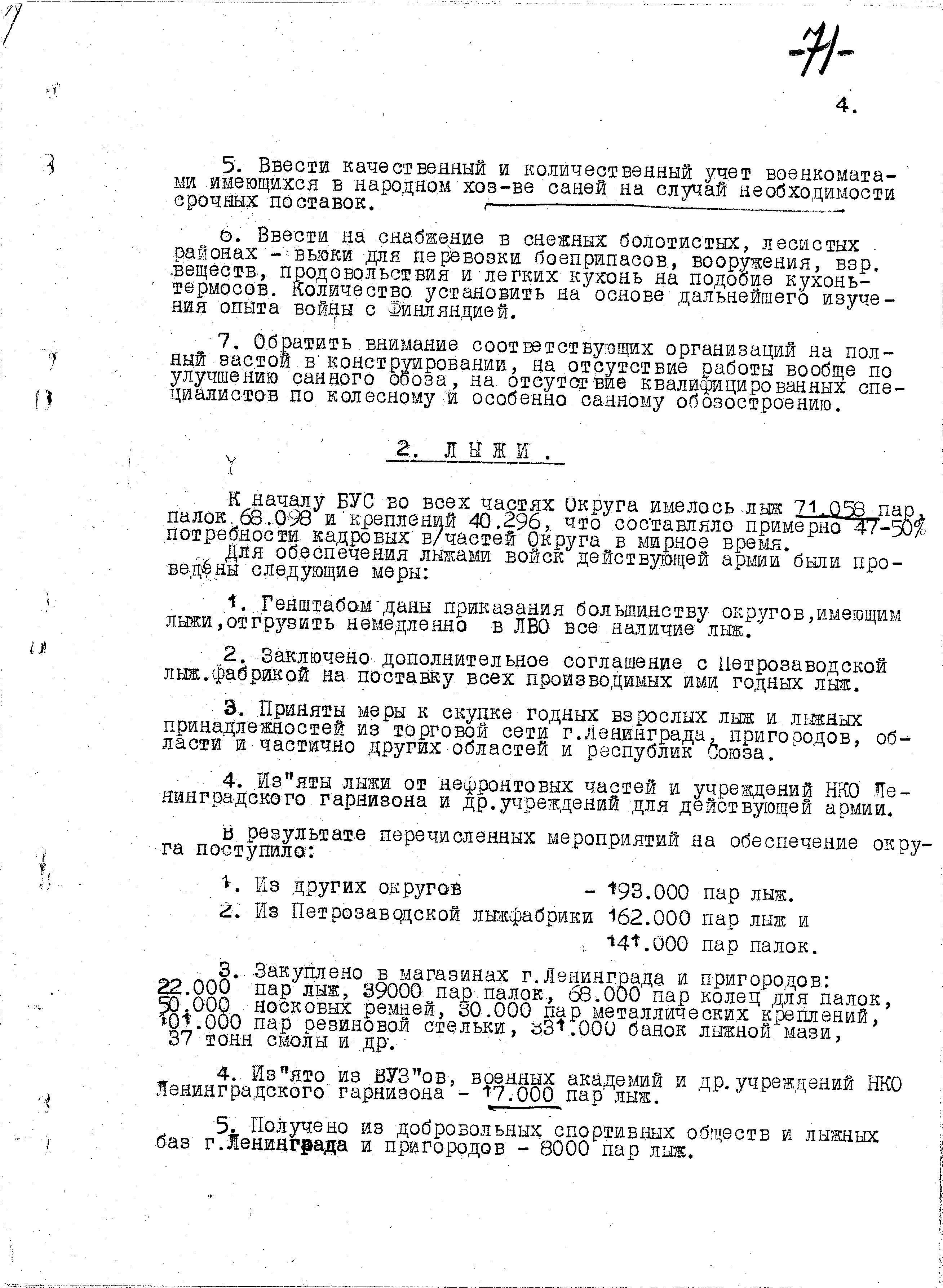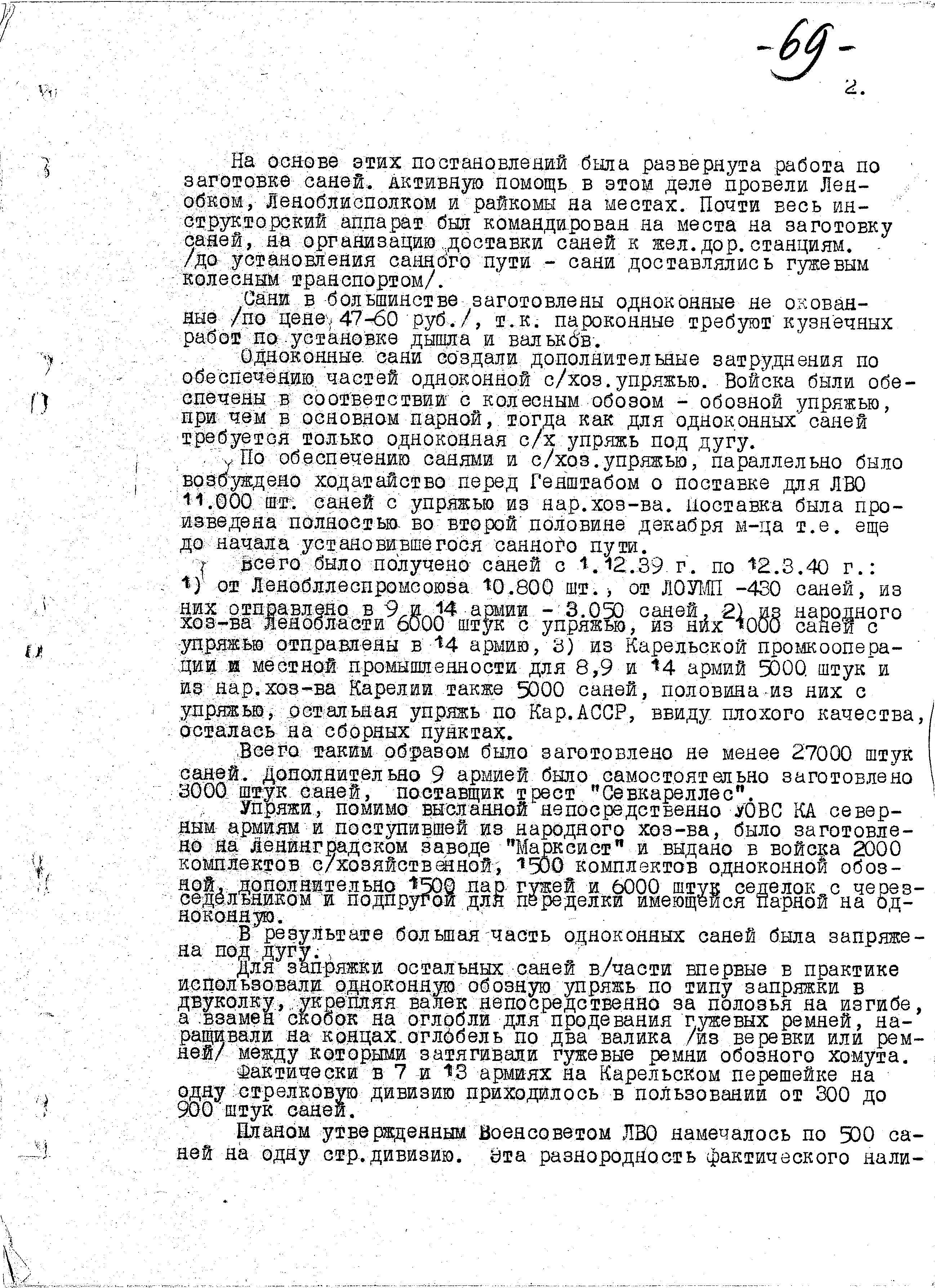 Д/с: Доклад Обозно-вещевого отдела ЛВО «… по обеспечению действующих армий…»