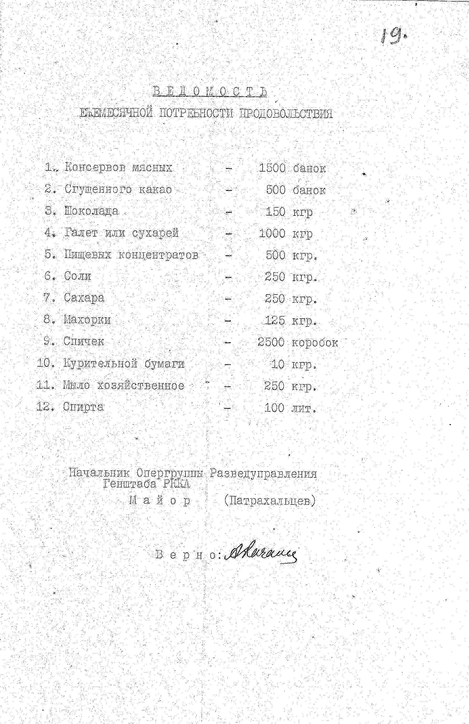 Ещё одна заявка разведчиков, на продовольствие для специального центра подготовки диверсантов. Желающие могут попробовать посчитать количество народа в нём.