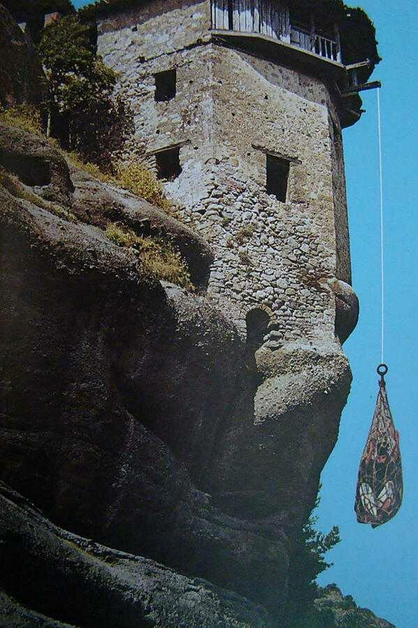 Попасть в некоторые монастыри возможно было только по навесным деревянным лестницам, либо в специальных сетках, которые поднимались монахами. Таким же образом на скалы поднимались все строительные материалы, продукты питания и другие необходимые для монастырской жизни вещи.