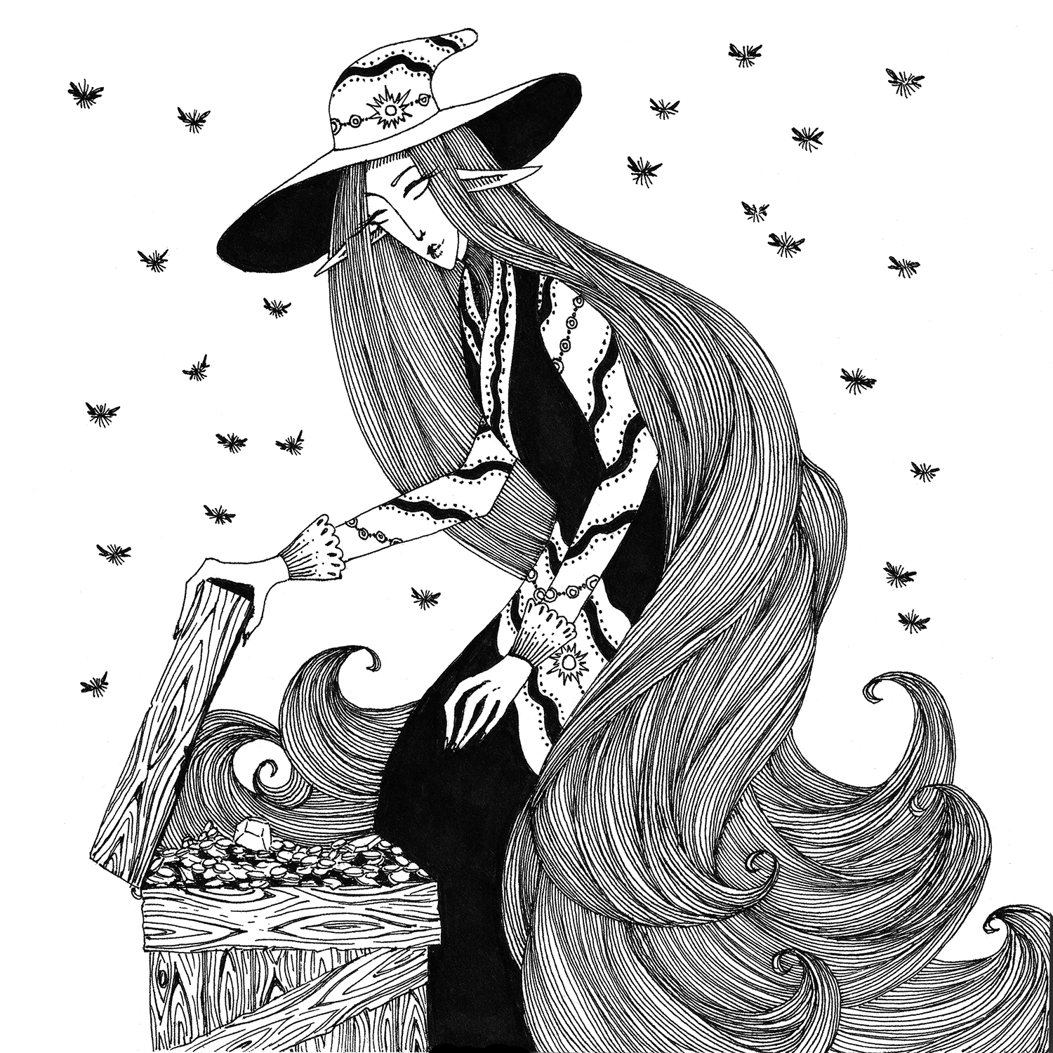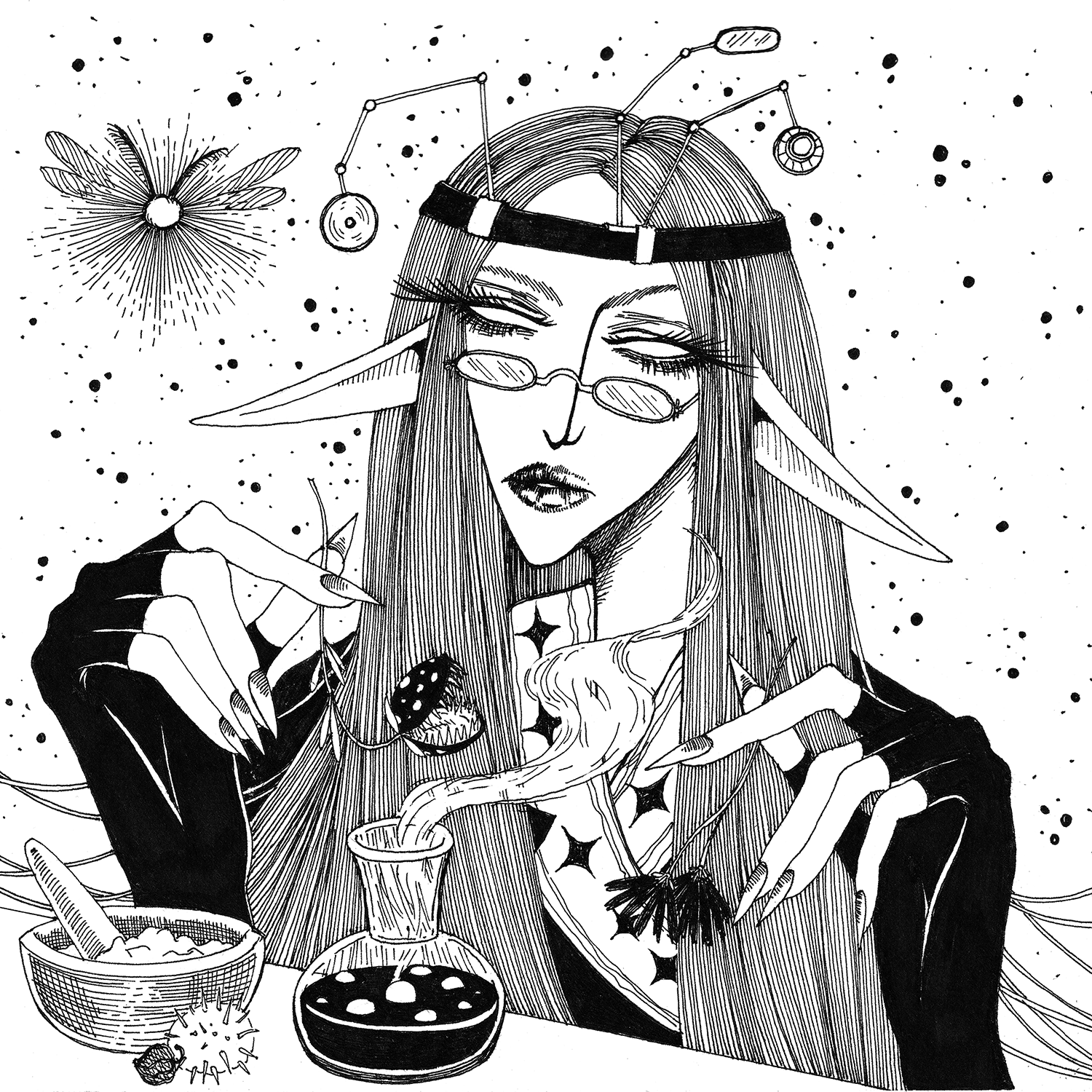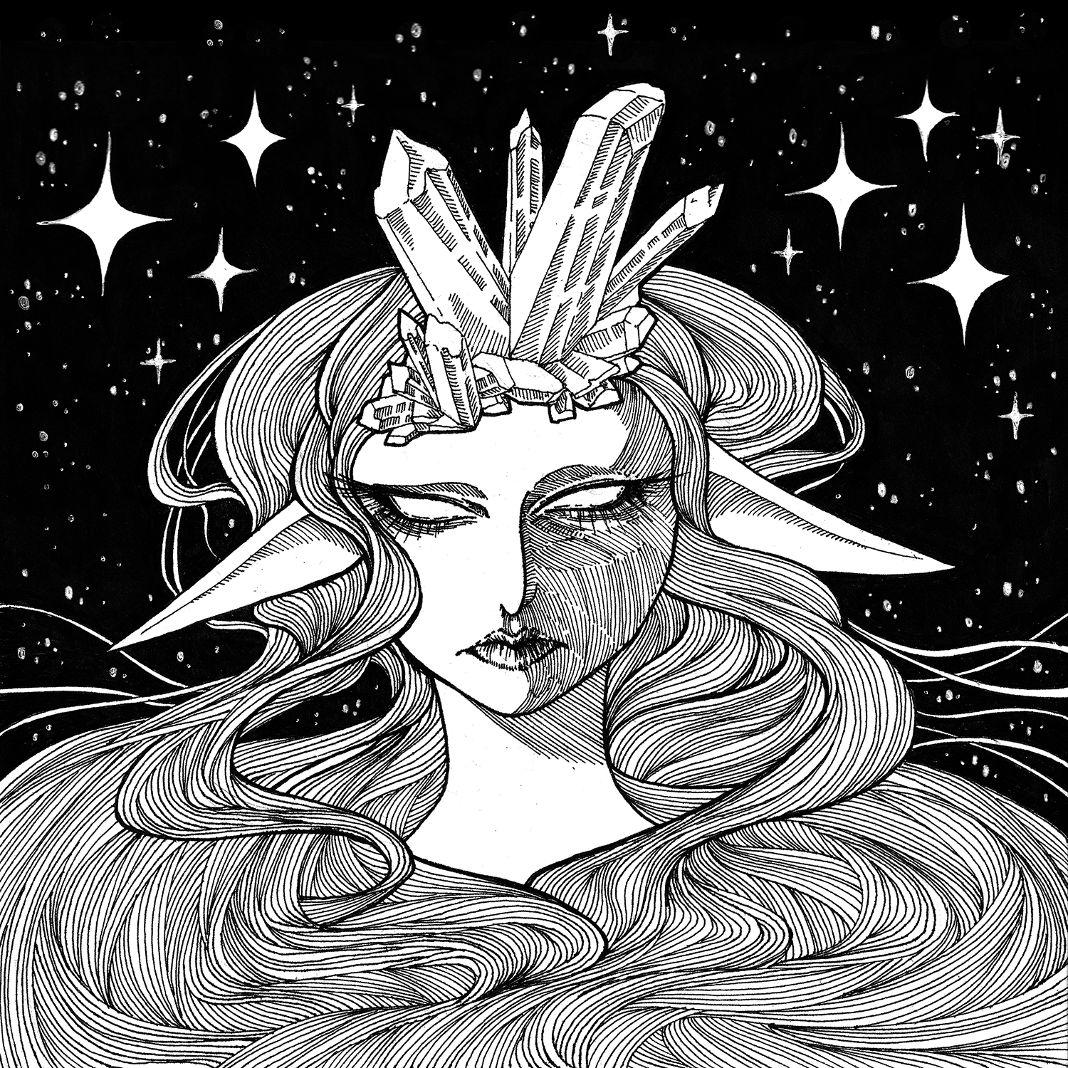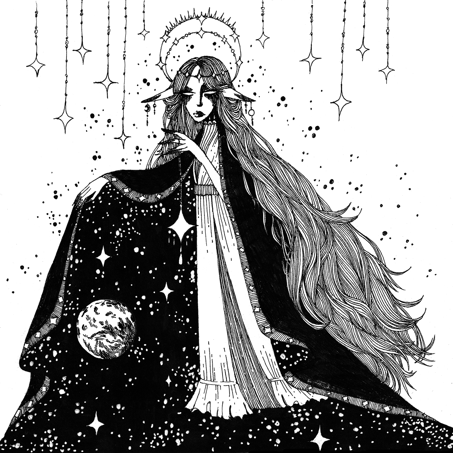 ✧ Ее задача следить за небом ночью, зажигать луну и звезды, а так же наблюдать за более низшими ночными духами. Небо для нее большое полотно, а новые созвездия – серебряная вышивка, что она искусно шьет, когда умирает очередной герой или случается знаковое событие в мире.