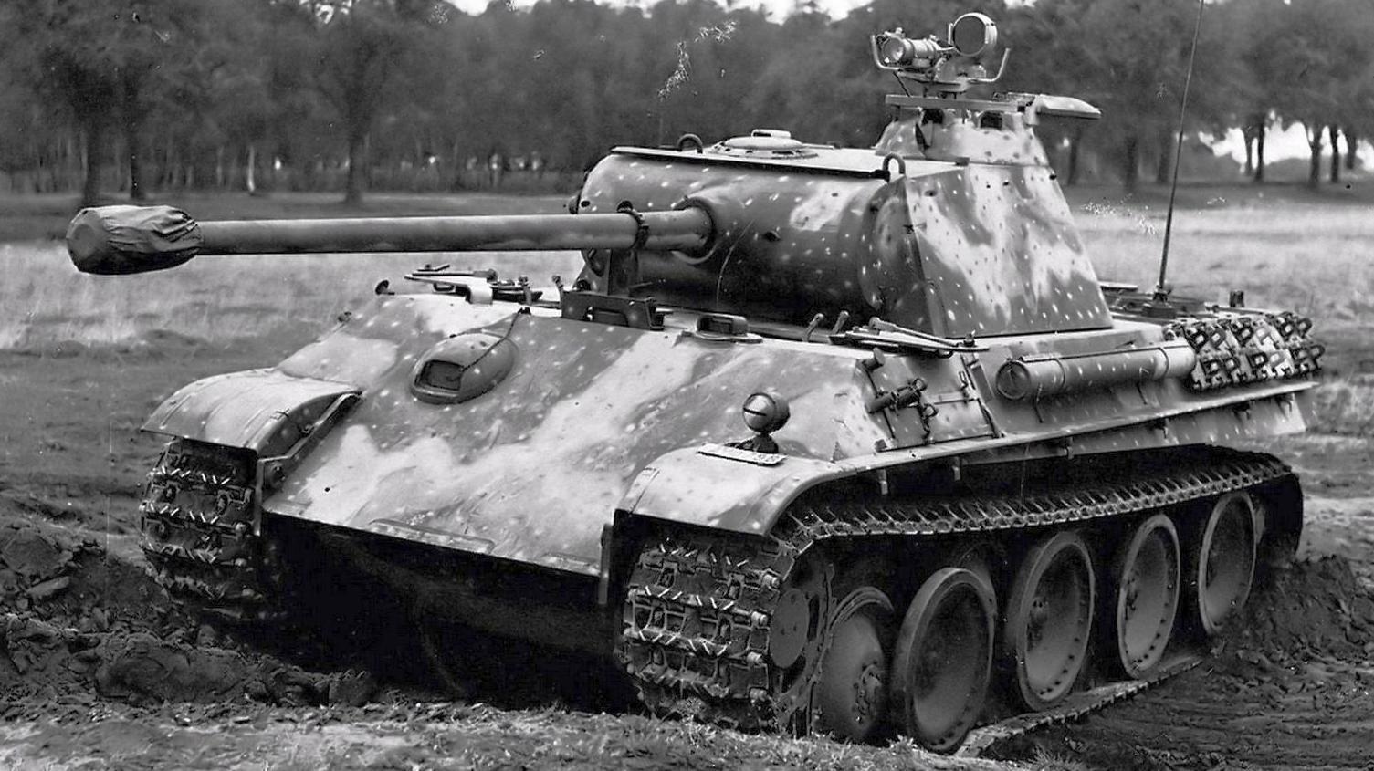 Согласитесь – жалкое зрелище. Кто бы мог подумать, что через каких-то 24 года немцы создадут образцы танков типа вот этой «Пантеры» Pz.Kpfw.V Ausf.G с прибором ночного видения Fg1250: