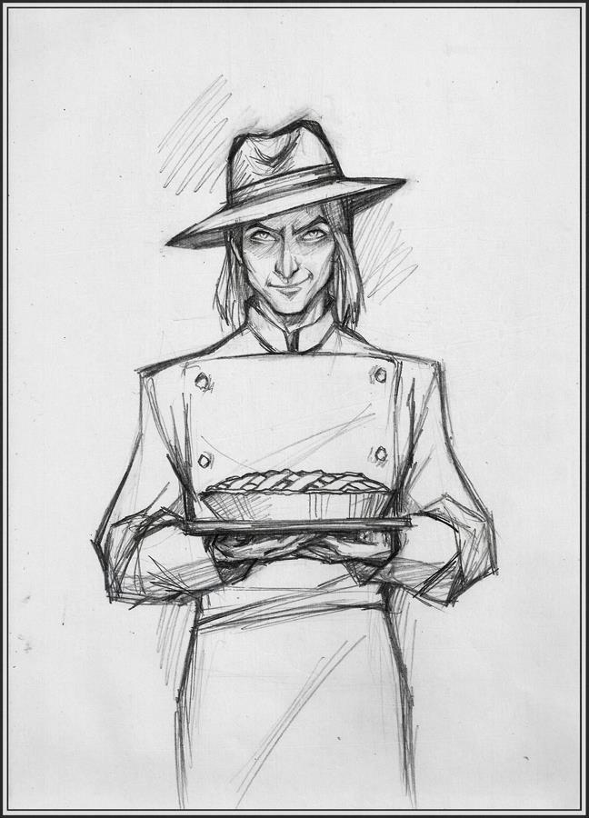 "В одном небольшом городишке жил да был загадочный человек. Он никогда не снимал головного убора, зато был талантливым кулинаром. Булочки с заварным кремом, вафельные трубочки, изысканные пирожные, вкуснейшее печенье... Ну, и, конечно, свежайший яблочный пирог. Все шло вполне неплохо, пока однажды в город не прибыла Злая Королева."