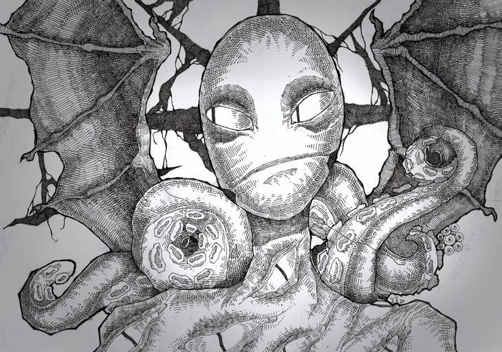 На АТ поселился художник Барбарик, рисующий по большей части персонажей игры Hollow Knight. Поскольку я - человек тёмный и в играх не разбирающийся, я её тут же загуглила на предмет картинок. Очаровательные там существа, премилые рогатые мультяшки. Но (на мой вкус) не больше, чем мультяшки.