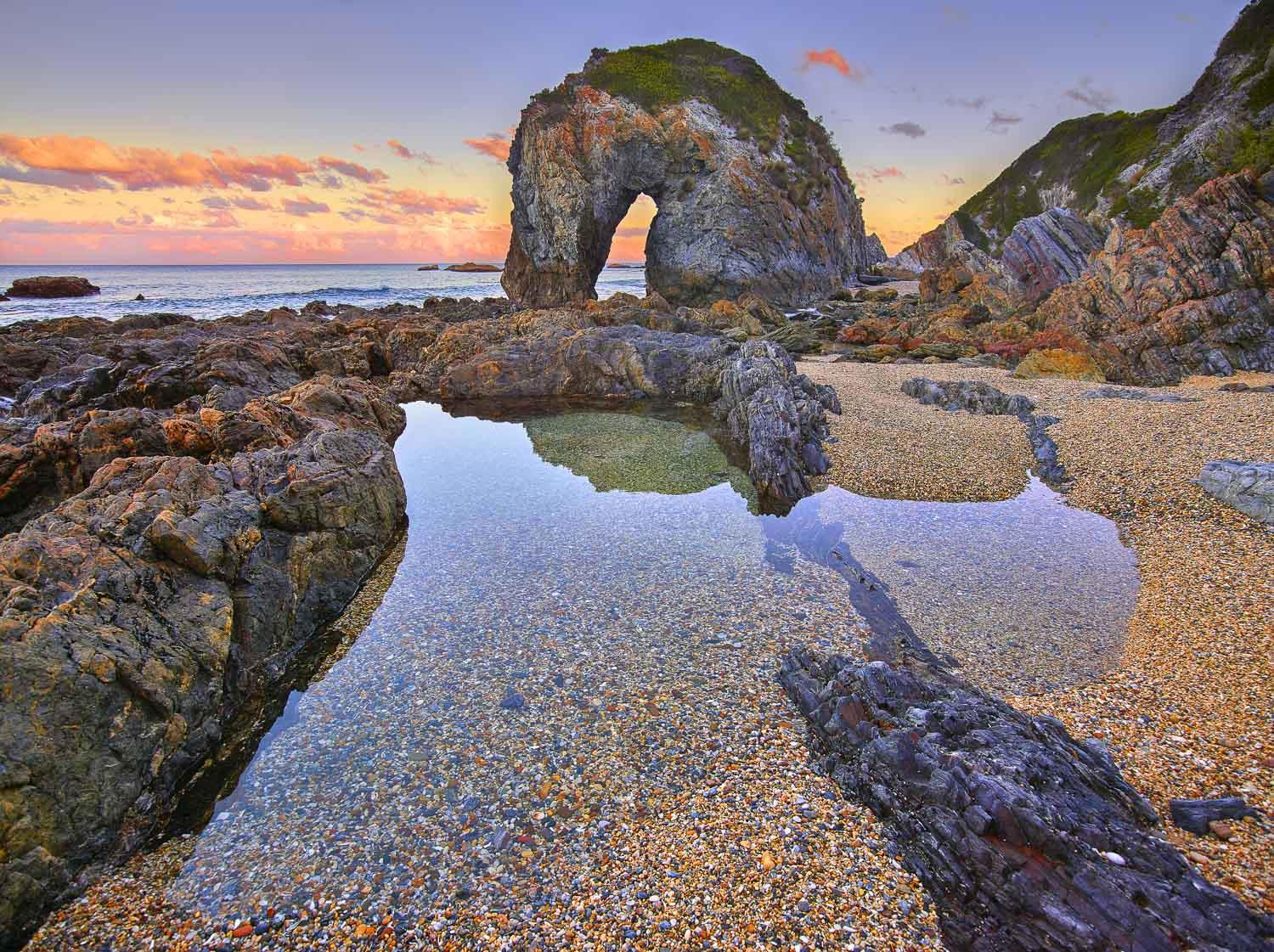 Вот прибрежная скала, над которой хорошо потрудились волны и ветер. Сможете догадаться, как её называют местные жители, а за ними — и многочисленные туристы?