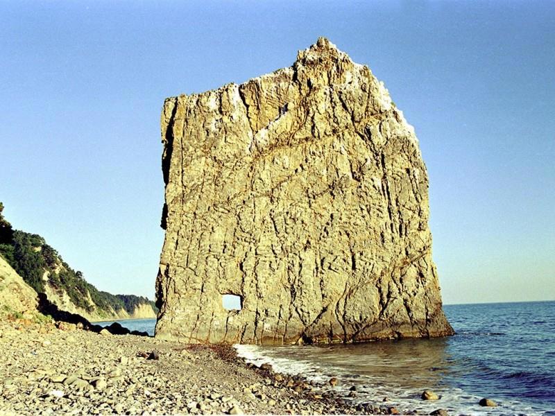 Это скала Парус на берегу Чёрного моря в 17 км к юго-востоку от Геленджика.