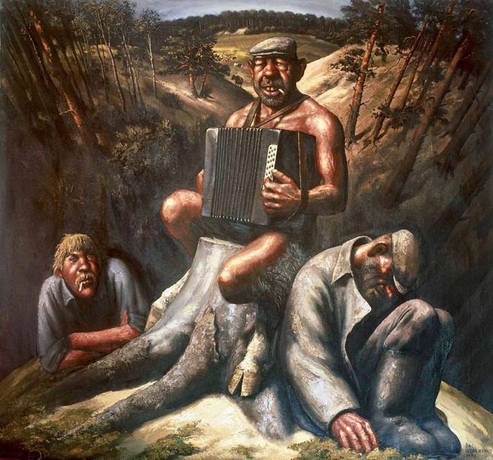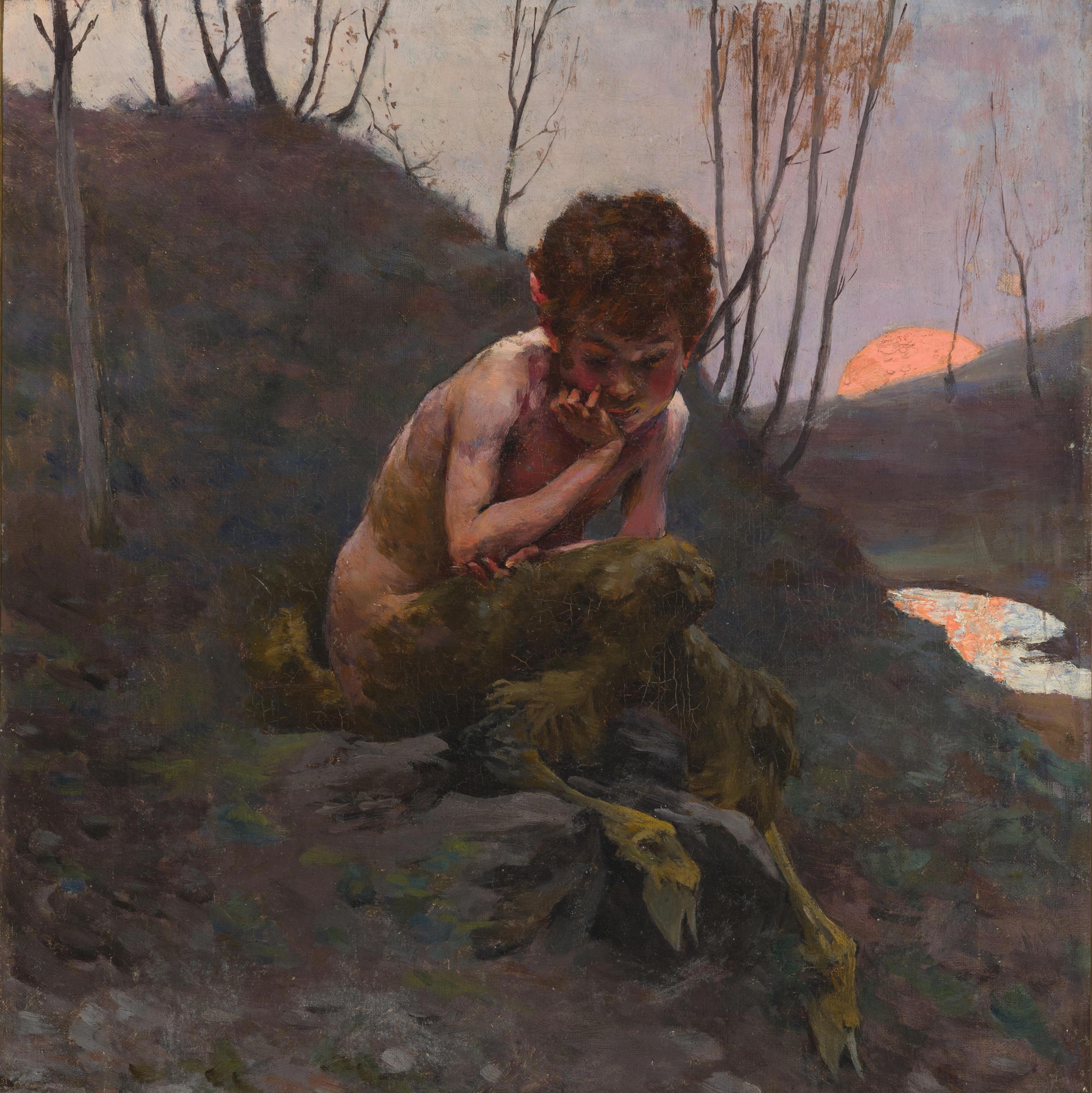 Фавн Марсий учит юношу Олимпия игре на свирели - Петр Васильевич Басин. 1821. Холст, масло.
