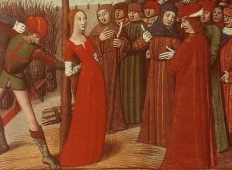 Самой знаменитой казнью ведьмы в веках осталось сожжение Жанны д'Арк. Случилось это знаковое для Франции событие 30 мая 1431 года в славном городе Руане. Инквизиция возбудила процесс по обвинению Орлеанской девы в колдовстве, непокорности церкви и ношении мужской одежды. Во время ее казни посреди эшафота стоял столб с доской, где было написано: «Жанна, называющая себя Девой, вероотступница, ведьма, окаянная богохульница, кровопийца, прислужница сатаны, раскольница и еретичка».
