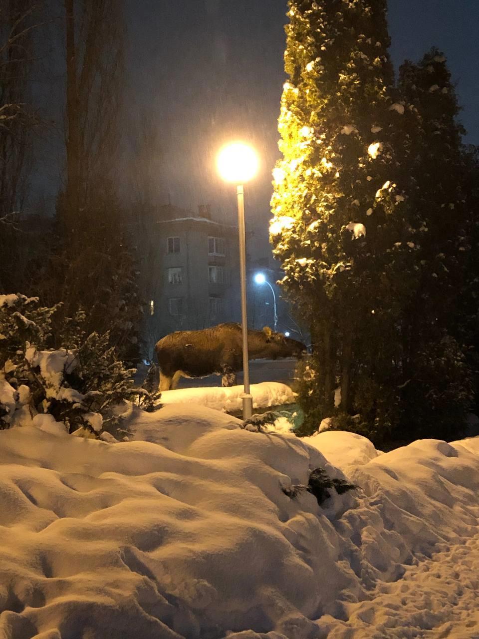 Автор: Сова ЛюськинаЕсть такой городок Заречный. Там лоси пасутся круглый год. Зимой их подкармливают капустой. Животные настолько привыкли, что сами подходят к людям и просят покормить их. Вот так они и гуляют. Всем хорошего вечера!