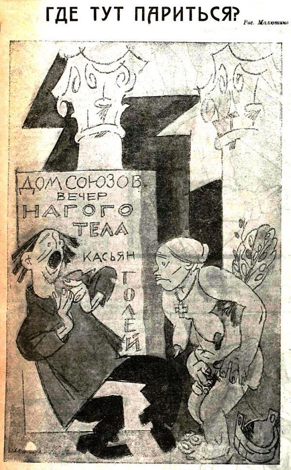 В-третьих, очень спорно, содействует ли это дикое новшество нравственности. Мы протестуем против «голых танцев» и не можем не протестовать против этого новшества. В тот момент, в который мы живем, когда не изжиты капиталистические уродства, как проституция, хулиганство, обнажение содействует не нравственности, а безнравственности. Это еще в большей степени относится к впечатлению детей.