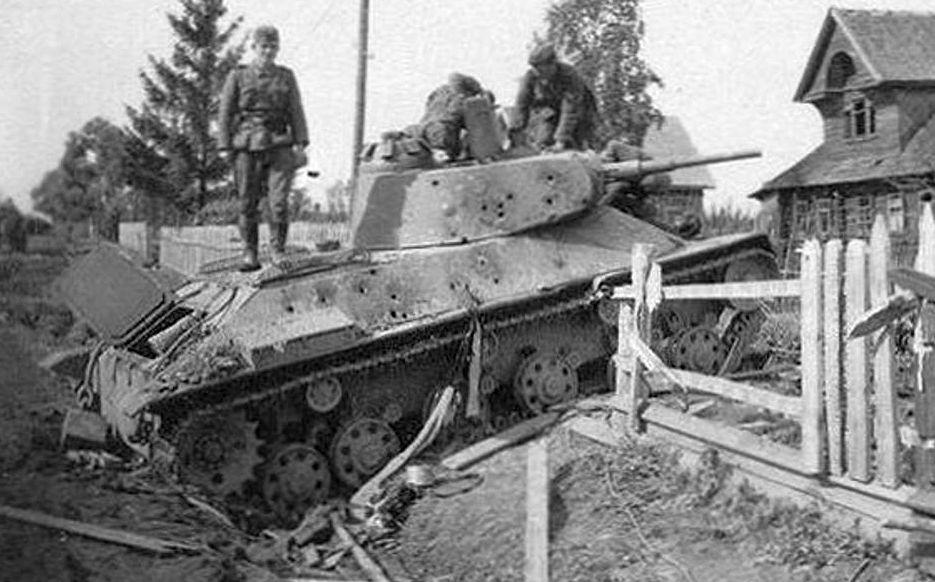 Немцам Т-50 всё же доставил немного хлопот. Вот посмотрите на фотографию подбитого танка Т-50: