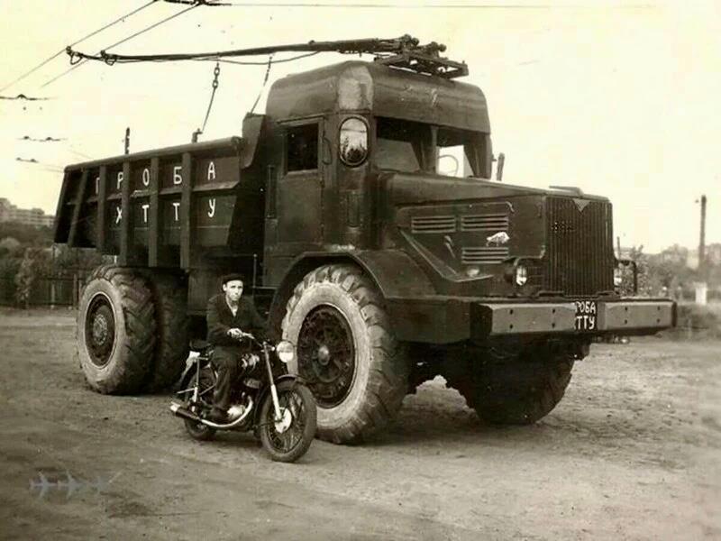 1954 год, СССР, троллейвоз на шасси карьерного самосвала МАЗ 525 ХТТУ (с 1959 г. - БелАЗ-525).